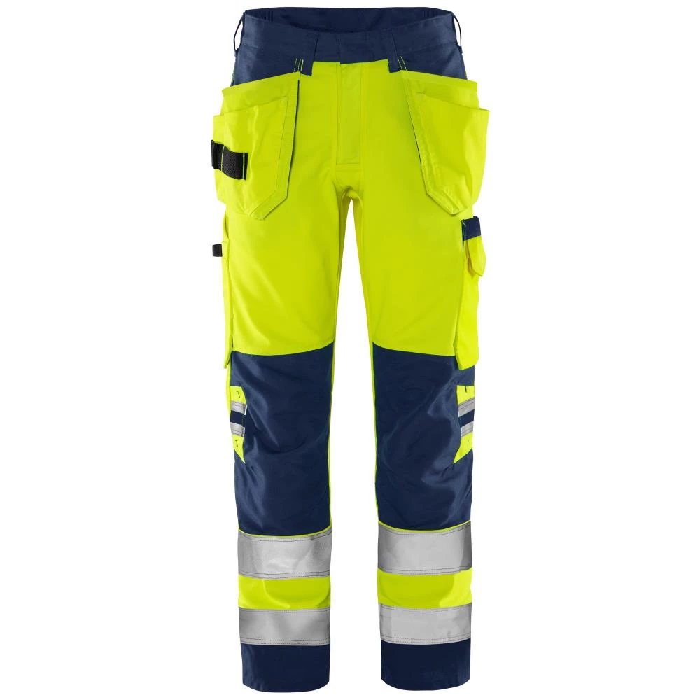 Hi-vis Green håndværkerbuks kl.2 2641GPL gul/marine. En let HiVis håndværksbuks lavet af økologisk bomuld og genanvendt polyester. Med EPD Miljøprodukterklæring. Udstyret med funktionelle lommer og stretchpaneler i taljen for ekstra komfort. Med detaljer som ribstrik stretch paneler i taljen, skjult forknap, Cordura-forstærket løsthængende forlommer, den ene med 3 små lommer og værktøjsstrop, den anden med ekstra lomme. Derudover 2 forlommer, 2 baglommer, dobbelt forstærket skridtsøm, hammerstrop, Cordura-forstærket værktøjslomme, blyantlomme, løkke til kniv. Med benlomme, lomme med klap og velcro, D-ring, Cordura forstærkede knælommer med indvendig åbning. Højdejustering for knæbeskyttere og Cordura-forstærkede ben. Benlængden kan forlænges med 5 cm eller forkortes med 2-4 cm, afhængigt af behov. Godkendt i henhold til EN ISO 20471 kl.2, EN 14404 sammen med knæbeskyttere 124292 og EN 13758-2 UPF 40+ Solar UV beskyttelse. Godkendt til 50 vaske. Godkendt til industrivask i henhold til ISO 15797. Med EPD registreringsnummer 3882 via environdec.com. Oeko-Tex certificeret. Fås i flere farver og størrelser.