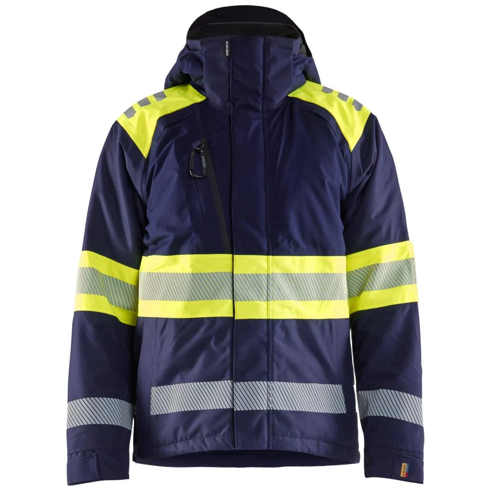 Slidstærk hi-vis vinterjakke. Jakken har quiltet for, er vind- og vandtæt med tapede sømme og har en behagelig, rummelig pasform for ekstra komfort. Hætten er aftagelig og tilpasset til hjelme og høreværn. Vandtæt 15.000 mm. Vindtæt, åndbarhed 4.000 g/m²/24H. EN ISO 20471 Høj synlighed. EN 343, 4,1. EN 342 sammen med model 1875. Fås i flere farver og størrelser.