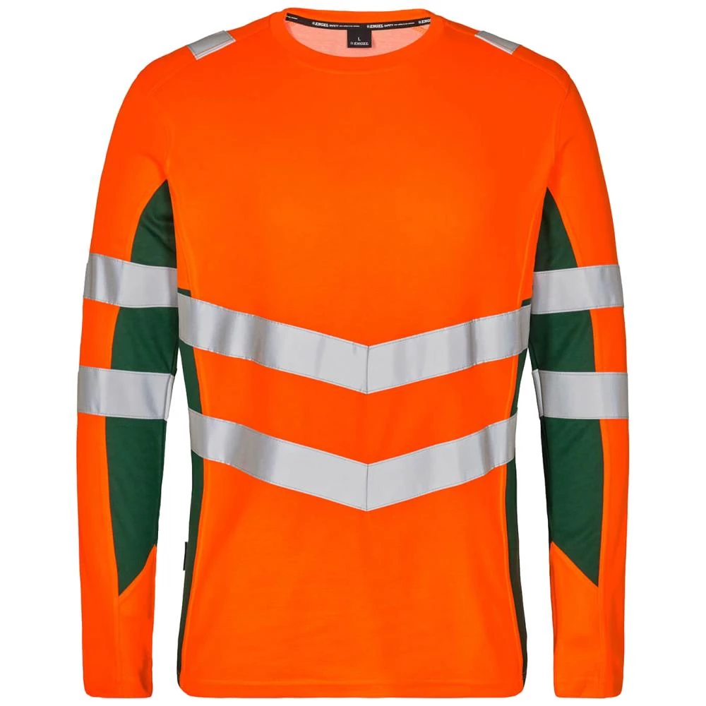 Behagelig og lækker fluorescerende langærmet T-shirt i moderne snit. T-shirten er fremstillet i behagelig pique stof med bomuld på indersiden for større komfort. Rib i hals. Reflekser på skuldre samt omkring ærmer og liv. Oeko Tex. EN ISO 20471 – klasse 2. Testet efter 25 vaske. Fås i flere farver og størrelser.