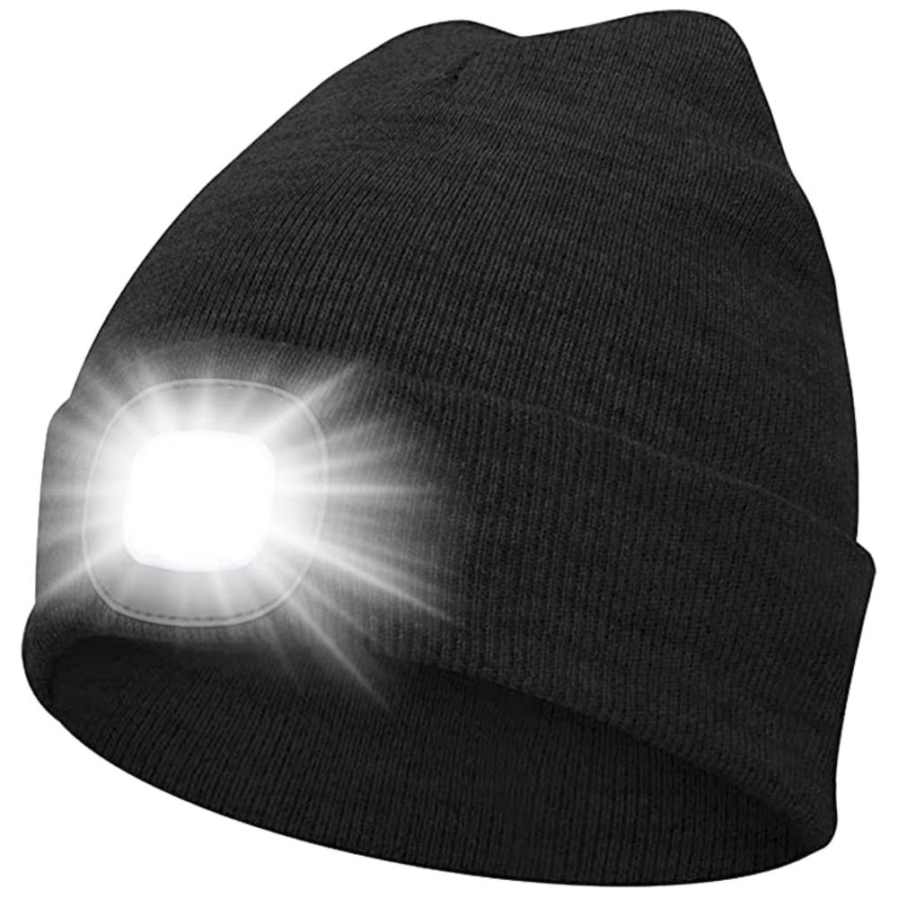 Strikhue sort m/120lumen LED-lygte USB-genopl.. Multifunktionel strikhue med indbygget genopladelig 120 lm LED-lygte – perfekt til efterårets udendørseventyr. For at oplade lygten, tages den enkelt ud af huen og tilsluttes enten computer, adapteren i stikkontakten, eller en powerbank. Lygten er nem at fjerne, hvilket gør huen let at vaske og vedligeholde.