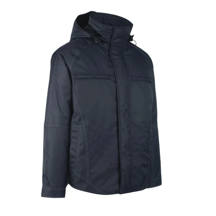 Frankfurt er en åndbar, vind- og vandtæt vinterjakke med tapede sømme. Modellen har aftagelig foret hætte med regulerbar elastiksnøre, for af quiltet fleece, rib (skjult i vindfang) ved håndled samt indvendig snøreregulering midt på hoften. Designet byder på ergonomisk formede ærmer for stor bevægelsesfrihed, lukning med lynlås og vindfang med trykknapper, samt D-ring. Frankfurt jakken har praktisk lommer: lynlåslomme under vindfang, brystlommer med lynlås, integreret telefonlomme i brystlomme, forlommer og Inderlomme med lynlås. Desuden er der lynlås nederst på ryg indvendigt til brug for tryk/broderi på produktet. Oeko-Tex Standard 100. EN 343 3/1. EN 342 3/WP (1,95 clo). Fås i flere farver og størrelser.
