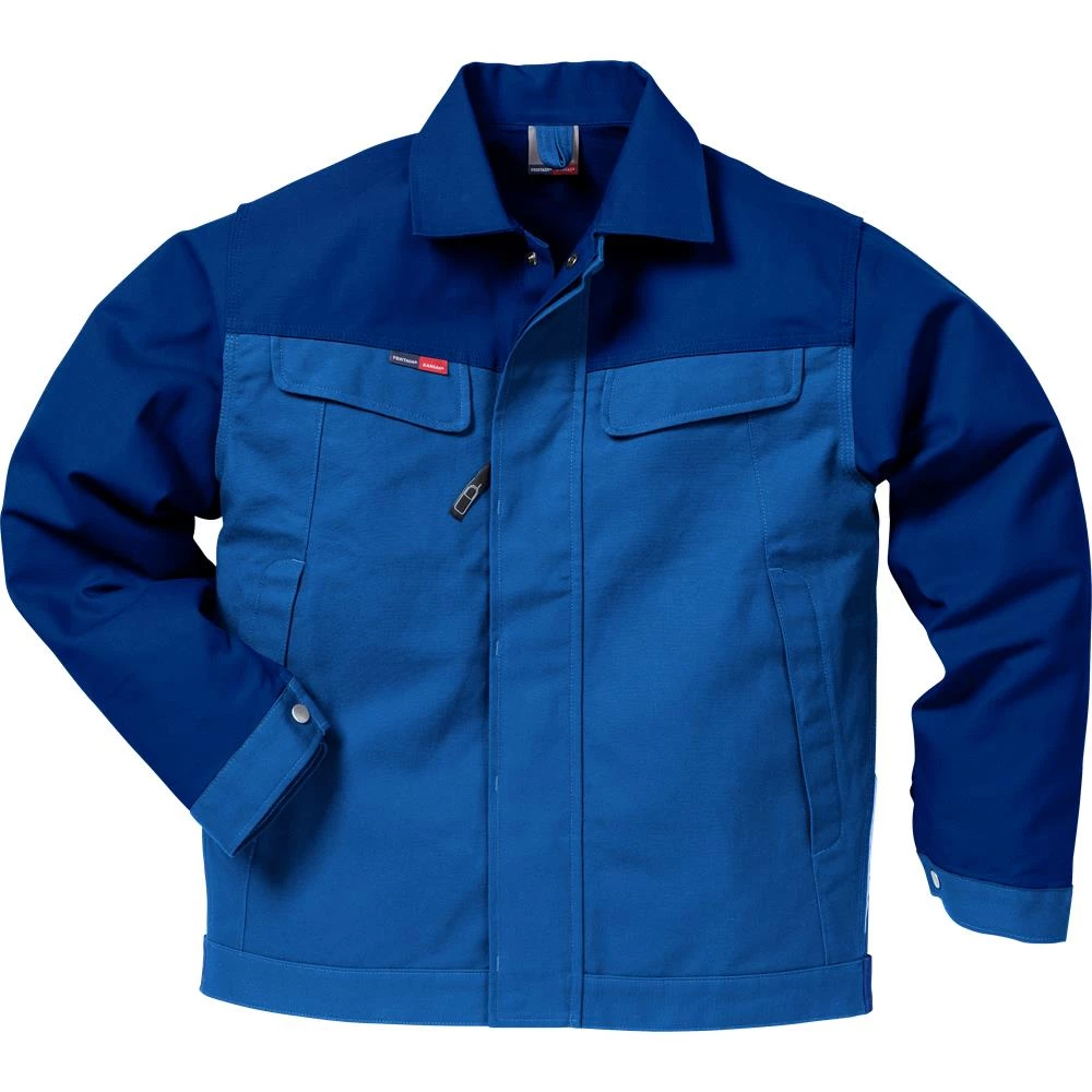 Icon jakke i kraftigt materiale i 100 % bomuld med skjult trykknapper i front. Godkendt til industrivask. Tofarvet med kontraststikninger og knapper foran med overfald. Formskårne ærmer, justerbar talje og manchetter. Bred ryg med bærestykke. Refleksvinger i sidesømme. Med 2 brystlommer med inderlomme og klap, mobillomme med lynlås og overfald, diagonalt snit foran med integrerede sidelommer med inderlomme, inderlomme. Fremstillet af 100% bomuld. Vægt 375 g/m². Fås i flere farver og størrelser.
