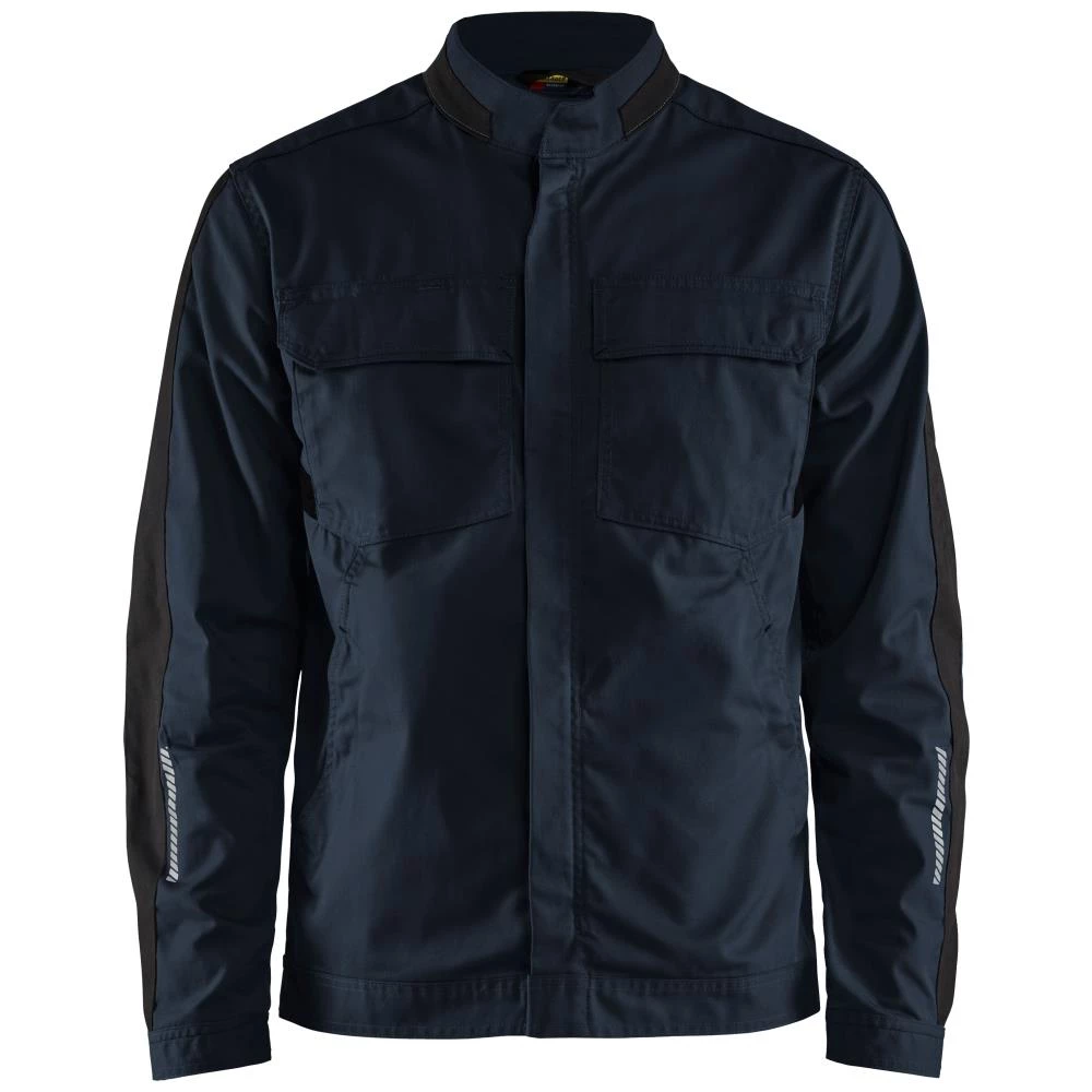 Industri-jakke i et ridsefrit design og et komfortabelt tovejs-stretchmateriale for komfort og god bevægelsesfrihed. Skjulte knapper reducerer risikoen for at ridse, når der arbejdes i miljøer med følsomme overflader. Velegnet til industri og servicebranchen. Modellen har formsyede ærmer, høj krave, justerbar linning og ærmeafslutning, D-ring, kraftig envejslynlås og funktionelle lommer: brystlommer med læg og lukning, indstikslomme med skjult lynlåslomme og ærmelomme med blyantlomme. Refleksdetaljer i ryg og på ærmer. Jakken er velegnet til industrivask (EN ISO 15797). Fås i flere farver og størrelser.