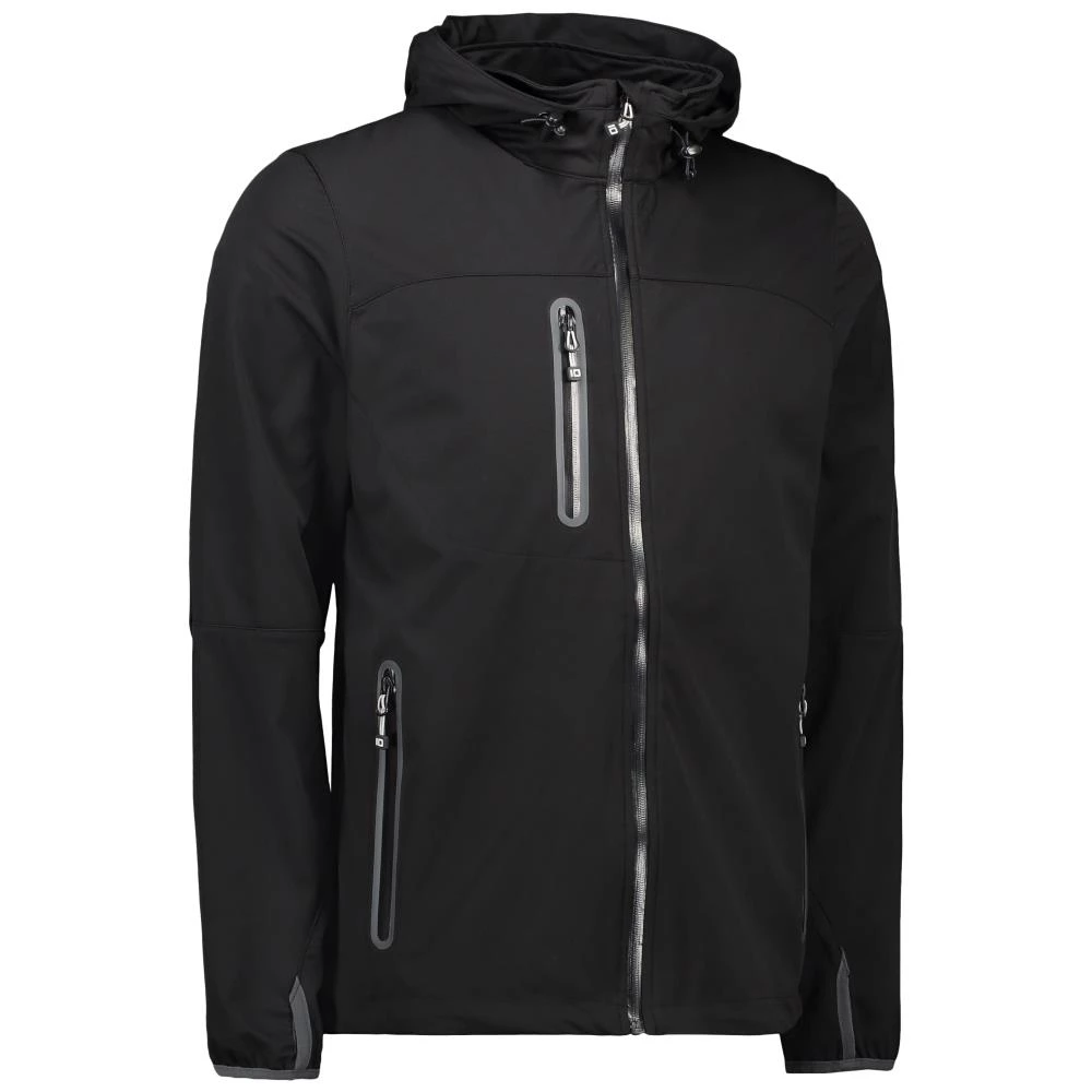 Funktionel og let softshelljakke med hætte og smarte kontrastdetaljer. Jakken er tilpasset en aktiv livsstil og har god pasform, som giver optimal bevægelsesfrihed. Fremstillet i et trelags materiale med strikket overflade, der giver en blød og strækbar kvalitet. Vind- og vandafvisende materiale med 3-lags membran for en åndbar kvalitet, der sikrer høj transport af overskydende fugt. Produktet har 4.000 MVP og 10.000 mm vandsøjletryk. Tætsiddende model med vandtæt lynlås og smarte lommer uden syninger. Oeko-Tex. Fås i flere størrelser.