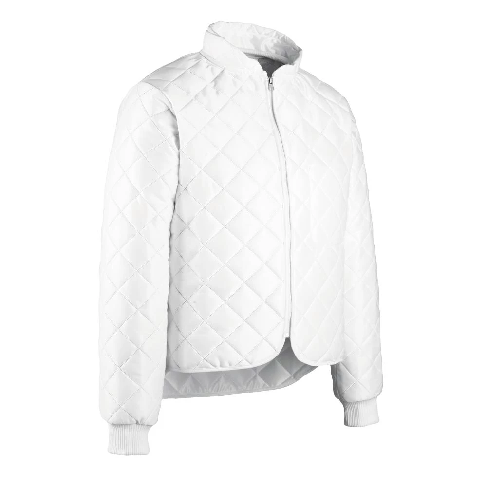 Timmins er en termojakke med let buende krave med indvendig rib, som slutter tæt til halsen og holder kulden ude. Jakken er lavet af ultralydssvejset quilt med polyestervat, som er meget isolerende og mere holdbart end syet quilt. Modellen har gennemgående lynlås, forlænget ryg, indvendig brystlomme og rib ved håndled. Kan kogevaskes ved 95°C. Produktet kan industrivaskes, ProWash – EN ISO 15797. Oeko-Tex Standard 100. Fås i flere størrelser.
