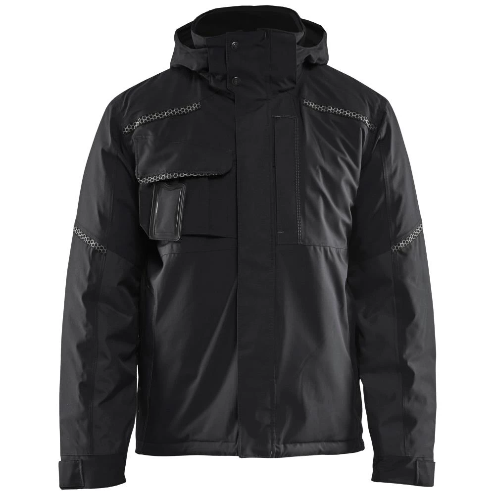 Funktionel vind- og vandtæt vinterjakke med tapede sømme, fleeceforet krave og aftagelig hætte, der er justerbar. Jakken har meshfor på de store svedzoner for at transportere fugt væk fra kroppen. Jakken er udstyret med en række lommer, såsom brystlomme til kuglepenne eller mobiltelefon, inderlomme og forlommer med lynlås og indvendig fleece. Refleksdetaljer på front, ryg, hætte og ærmer. Ærmeafslutningen kan justeres med velcro og har tommelfingerhul. Perfekt til de kolde vinterdage. Certificeret iht. EN 342 beklædning til beskyttelse mod kulde med vinterbuks model 1810 og EN 343 beklædning mod dårligt vejr. Vandtæt 11.000 mm. Vindtæt, åndbarhed 4.000 g/m²/24H. Fås i flere farver og størrelser.