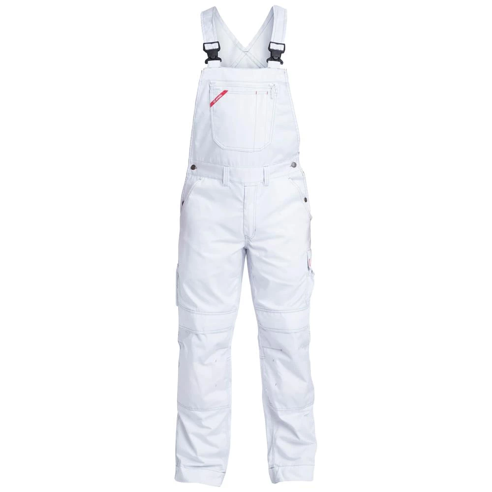 Funktionel overall med kontraststikninger. Overallen har høj ryg og bred elastik samt regulerbare seler. Brystlomme med inddelinger til f.eks. skriveredskaber samt brystlomme med lynlås. Optimal pasform med bl.a. ergonomisk formet knæparti. Regulerbar livvidde. To rummelige skrålommer foran. To baglommer med klap. Lårlomme med klap samt inddelinger til f.eks. skriveredskaber. Forstærket tommestoklomme med ekstra inddelinger og frithængende bund for optimal bevægelse. Regulerbar hammerstrop. Forstærket knælomme med to indstillingsmuligheder til knæpude. Forstærkning i bunden af buksebenene bagpå for ekstra slidstyrke. Reflekspiping midt på benet bagpå for øget synlighed. Benene har en ekstra bred oplægning, der er beregnet til at øge længden på overallen, såfremt der er brug for ekstra benlængde. En enkelt søm pilles op, og derefter er overallen med ekstra benlængde – og stadig sømmet op. Oeko Tex. Fås i flere farver og størrelser.