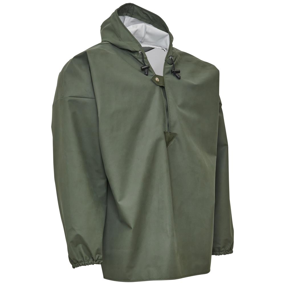 Busseronne i fiskeolie- og kuldebestandigt materiale. Modellen har elastikmanchetter i ærmerne, fast hætte med snoretræk, samt trykknapper i ærmer og hals. EN 343, EN 14605, EN 14126. Fås i flere farver og størrelser.