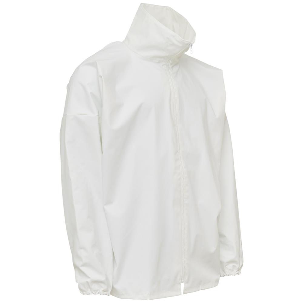 Fiskeolie- og kuldebestandig regnjakke med lynlås i front og elastik i ærmer og ryg. EN 343, EN 14605, EN 14126. Fås i flere farver og størrelser.