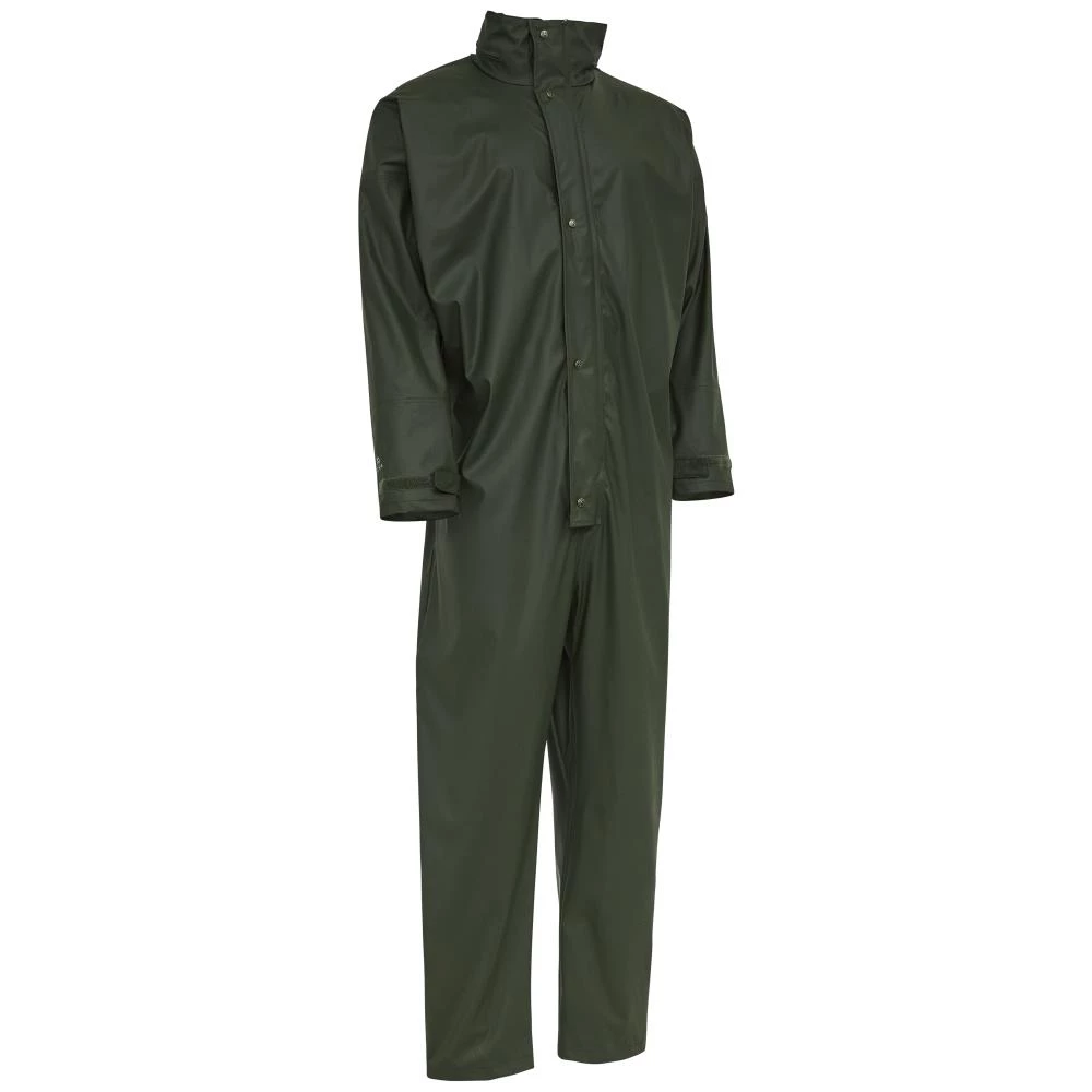 Dry Zone PU regnheldragt med lynlås og dobbelt vindfang, ærmevindfang med elastik samt justering med gribebånd, trykknap i ben og skjult hætte med snøretræk. Dragten er med forstærket svejsning i skridtet for ekstra slidstyrke. EN 343. Fås i flere farver og størrelser.