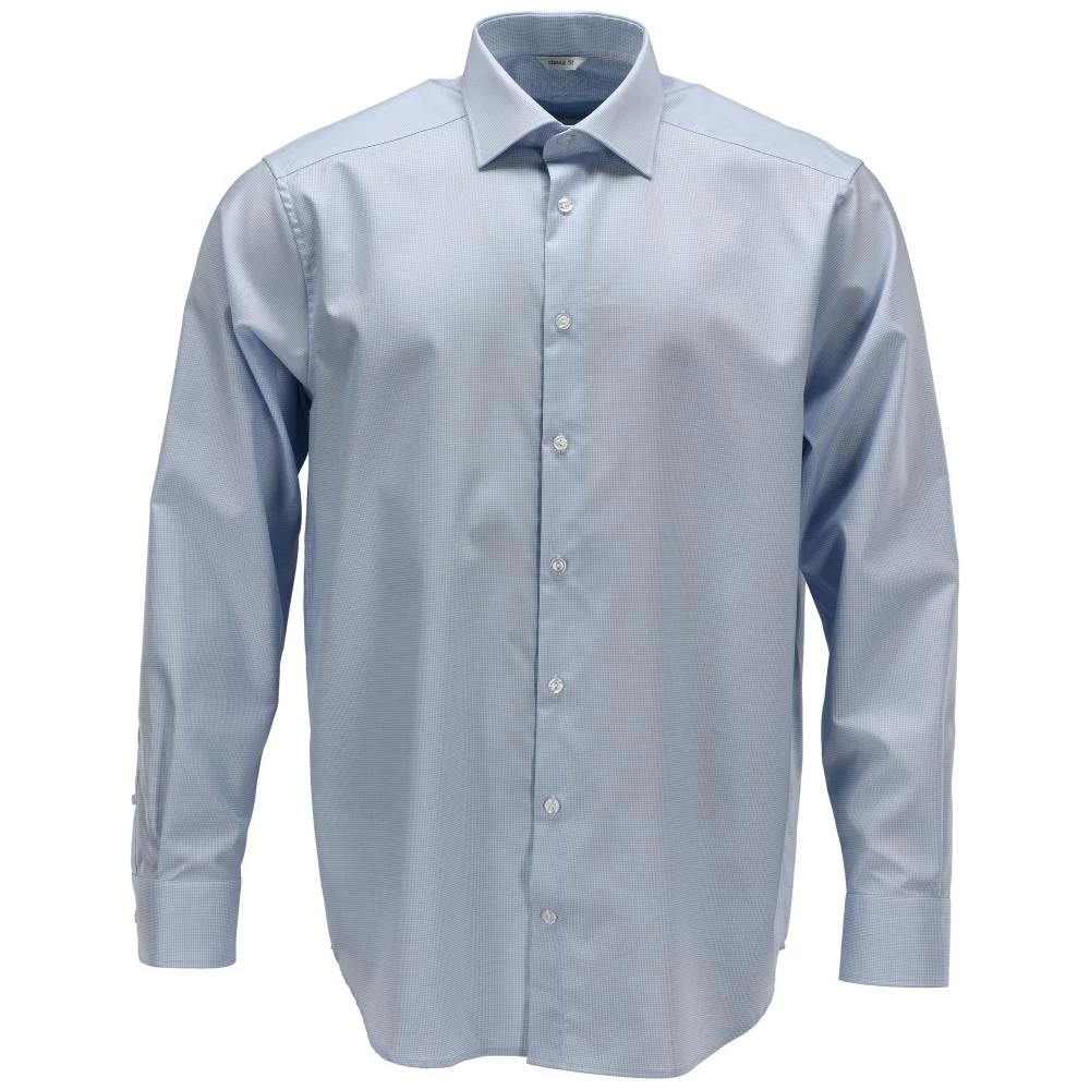 Frontline klassisk signatur skjorte med rummelig pasform med stor bevægelsesfrihed. Let og stilren skjorte i ren bomuld, der gør den åndbar. Strygelet kvalitet. Elegant cutaway krave med god plads til slipseknuden samt med flipstivere. Lukning med knapper. Manchetter er regulerbare. Læg i ryg. Oeko-Tex Standard 100 certificeret. Fremstillet af 100 % bomuld med ekstra lange fibre. Lys blå/hvid ternet. Fås i flere størrelser.