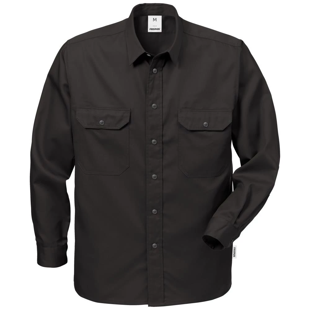 Skjorte med trykknapper i slidstærkt materiale med høj farveægthed, velegnet til industriarbejdere eller serviceteknikere. Farverne passer til al industribeklædning, så det er nemt at blande på kryds og tværs. Modellen har lange ærmer, to brystlommer med klap, og trykknapper. Oeko-Tex certificeret. Fås i flere farver og størrelser.
