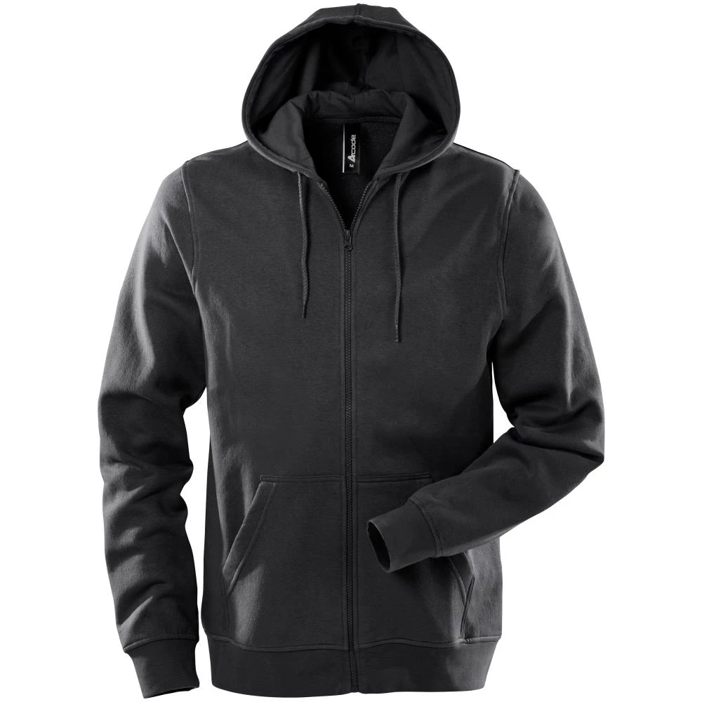 Sweatshirt med lynlås og lommer i front. Sweatshirten har hætte med snorejustering, elastan-ribkant forneden og ved ærmegab samt børstet bagside for god komfort. Fås fra størrelse XS-3XL.