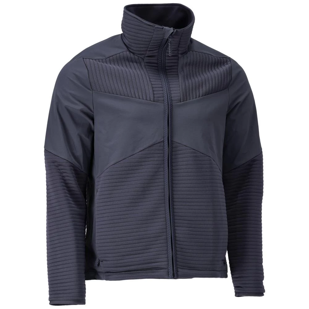 Fleecetrøje med gennemgående lynlås i fitted model. Foret og vindtæt, så den kan fungere som dit yderste lag. Høj andel af genanvendt polyester i hovedmaterialet. Høj krave. Lukning med lynlås og vindfang. Forlommer med lynlås. Elastik i nedre kant med regulering i siden. Elastikbånd ved håndled. Oeko-Tex Standard 100 certificeret. Mørk marine. Fås i flere størrelser.