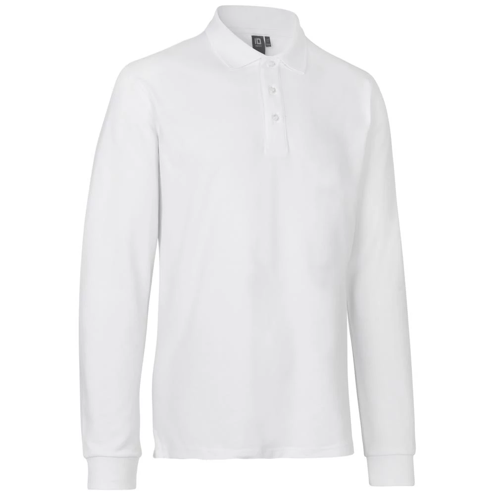 Tidløs, langærmet poloshirt i piquekvalitet med stretch. Lange ærmer med elastisk rib afslutning. Indvendig med nakkespejl og nakkebånd. Tone i tone knaplukning. Oeko-Tex. Fås i flere farver og størrelser.