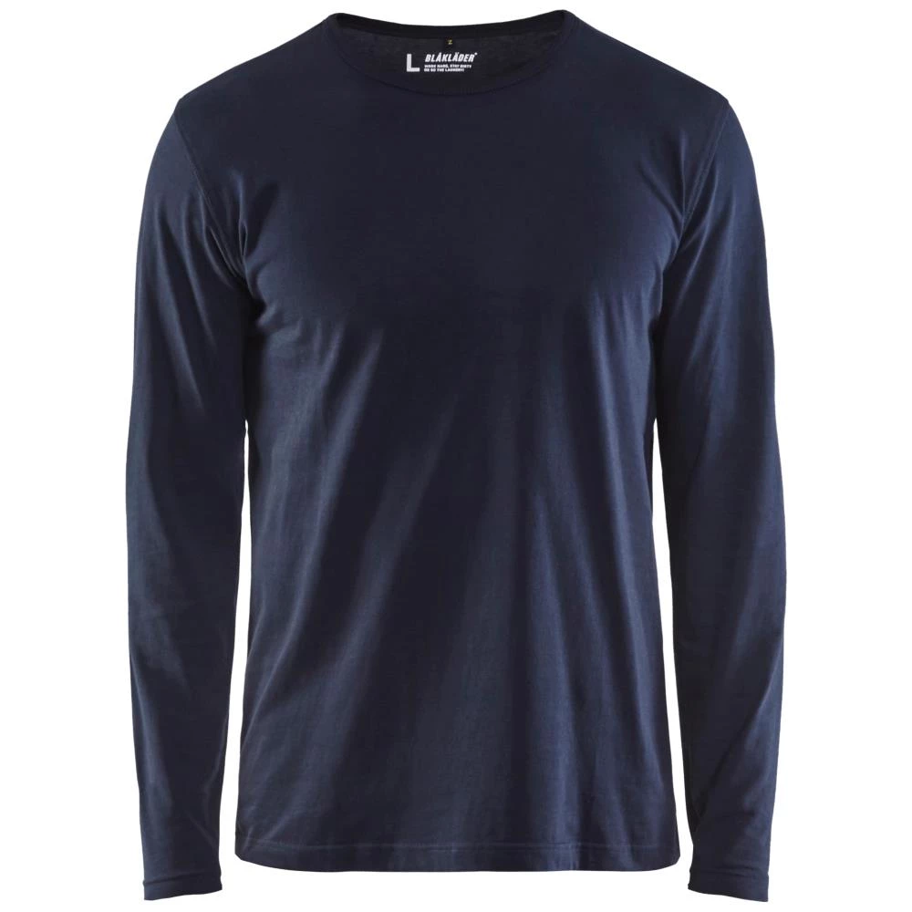 Klassisk og behagelig T-shirt med lange ærmer i 100 % bomuld. T-shirten har rib i hals og forstærket nakke- og skuldersøm. Fås i flere farver og størrelser.