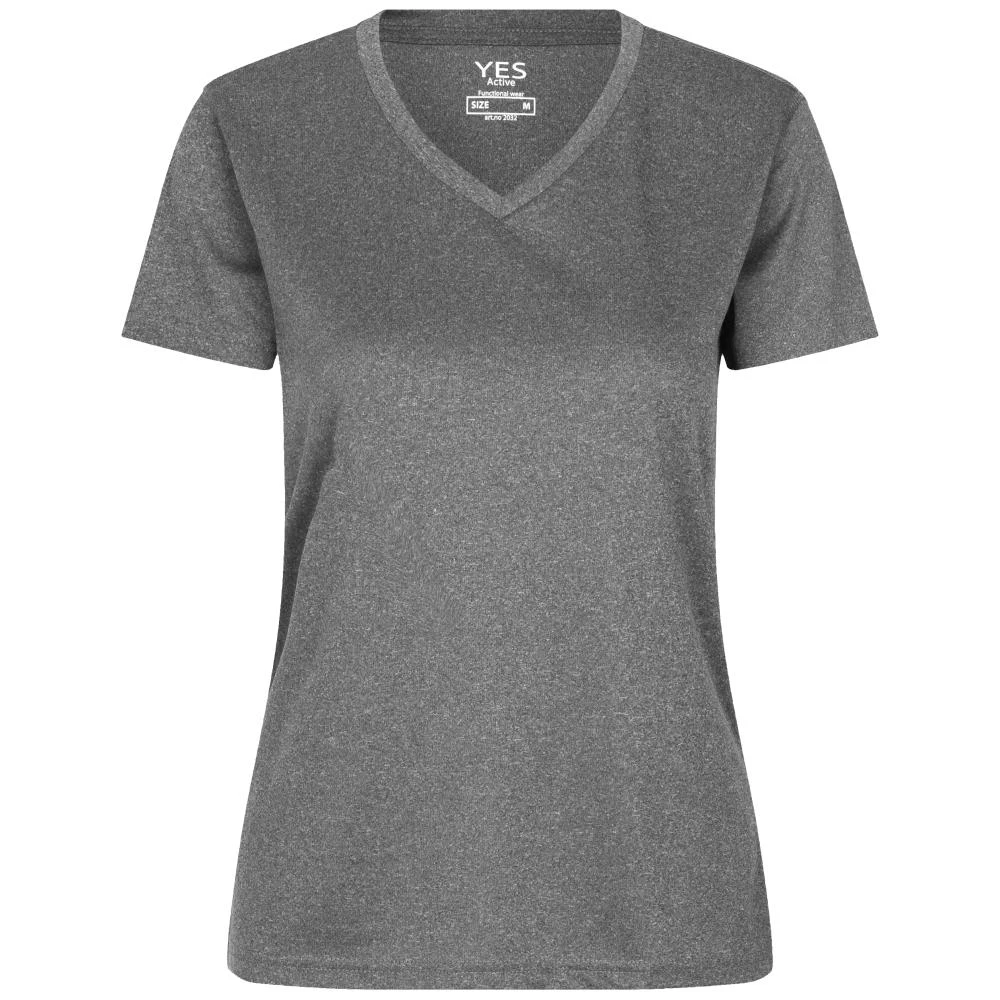 YES Active er en funktionel T-shirt let figursyet til kvinder og tilpasset en aktiv livsstil. Modellen er med V-hals og korte ærmer. Fremstillet i svedtransporterende, åndbar og hurtigttørrende kvalitet. Oeko-Tex Standard 100. Fås i flere farver og størrelser.