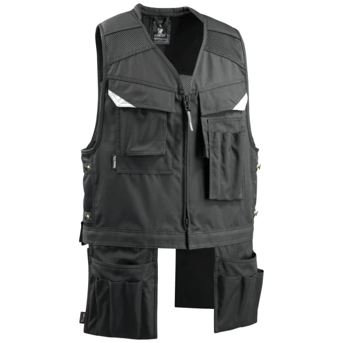 Baza værktøjsvest med to hængelommer foran og to hængelommer bagpå af slidstærk Cordura – forreste hængelommer har stikmodstandsdygtig Kevlar-forstærkning i bunden. Vesten har derudover brystlomme til skruetrækkere i forskellige længder – trykknap i bunden på bagsiden, som kan åbnes, når arbejdet kræver, at lommen hænger frit, brystlommer med klap med magnetlukning, stikmodstandsdygtig Kevlar-forstærkning i bunden af brystlommen, samt telefonlomme med lynlås. Et tykt lag vat i skuldrene mindsker pres på skuldrene, når vesten er fyldt op og tung af værktøj. Lukning med tovejs lynlås. D-ring. Hammer- og værktøjsstrop. Baza værktøjsvest har knapregulering i siderne til brug, når der skiftes lag indenunder (store i størrelsen – beregnet til at trække over øvrig beklædning). Ekstra synlig for omgivelserne ved hjælp af reflekseffekter. Med magneter og må derfor ikke bruges af personer med pacemaker/ICD eller lignende. Oeko-Tex Standard 100. Fås i flere størrelser.