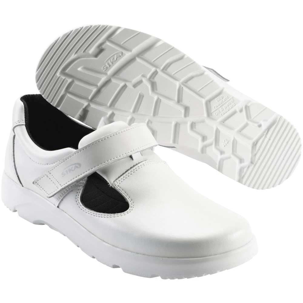 Let og komfortabel lukket sandal i Optimax-serien. Justerbar velcrolukning med rem, som kan klippes til uden at flosse. Skridhæmmende og stødabsorberende ydersål af PU. Let , fleksibel og robust sålkonstruktion, som samtidig minimerer risikoen for vridskader. Åndbart, slidstærkt og vandafvisende Permair-læder. Inderfor af svedtransporterende, åndbart og slidstærkt materiale. Indlægssål af let og antibakterielt materiale, som er stødabsorberende og åndbar, og derforuden, vaskbar ved 30°C. Til brug i hospital og pleje, hotel, restauration og kantine, service og rengøring, medicinal- og levnedsmiddelindustri. Fås i sort og hvid i str. 35-48.