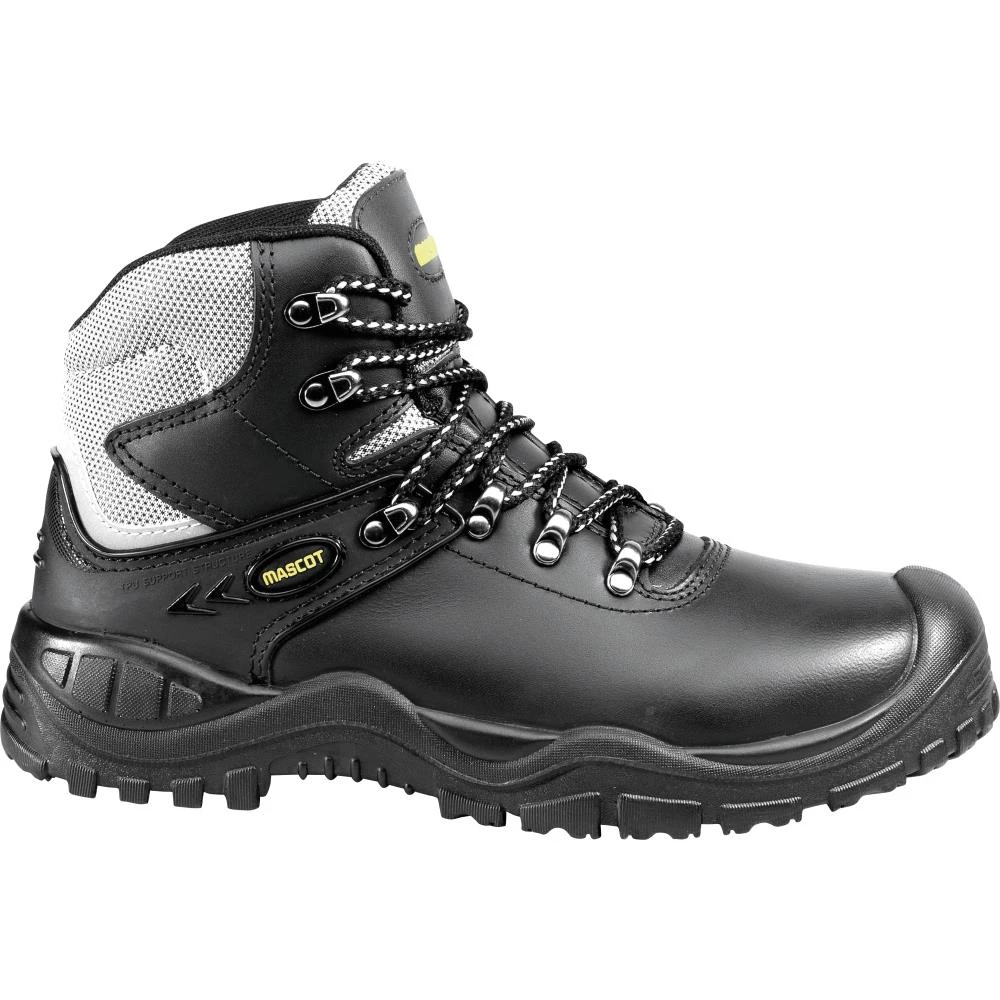 Tåkappe af aluminium er ergonomisk formet. Sømværn af stål. Multifunktionsgelenk stabiliserer og har indbygget komfortskum. Slidsål af PU/gummi, sort med gule kontraster, ekstremt skridsikker. Indlægssåler er udtagelige, antistatiske og slidstærke. Fugt optages og afgives effektivt. Pronose af PU er formstøbt. Sålen er olie- og benzinresistent samt resistent over for visse kemikalier. Sålen er varmebestandig op til 300°C kontaktvarme. Stigegreb. Komfortsål er stødabsorberende. Skaft i vandafvisende og åndbart ydermateriale. Foldepløs hindrer indtrængen af snavs, kombineret skind/tekstil. Tekstilfor, åndbart. Velegnede til knælende arbejde. TPU-hælstabilisator. Bagkappe. Profildybde 3,5 mm. Refleksindsatser.