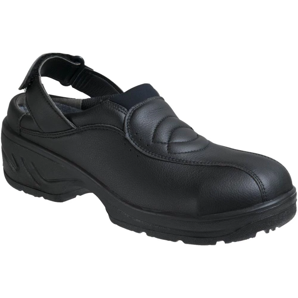 Sikkerhedstræsko med hælrem. Oliebestandig Gram-ydersål. Mikrofiber-overlæder. FX2 Pro indersål. Antistatiske egenskaber. Ergothan støddæmpnings-system. ESD-godkendt. Tåværn af stål. Til brug i hotel, restauration og service.