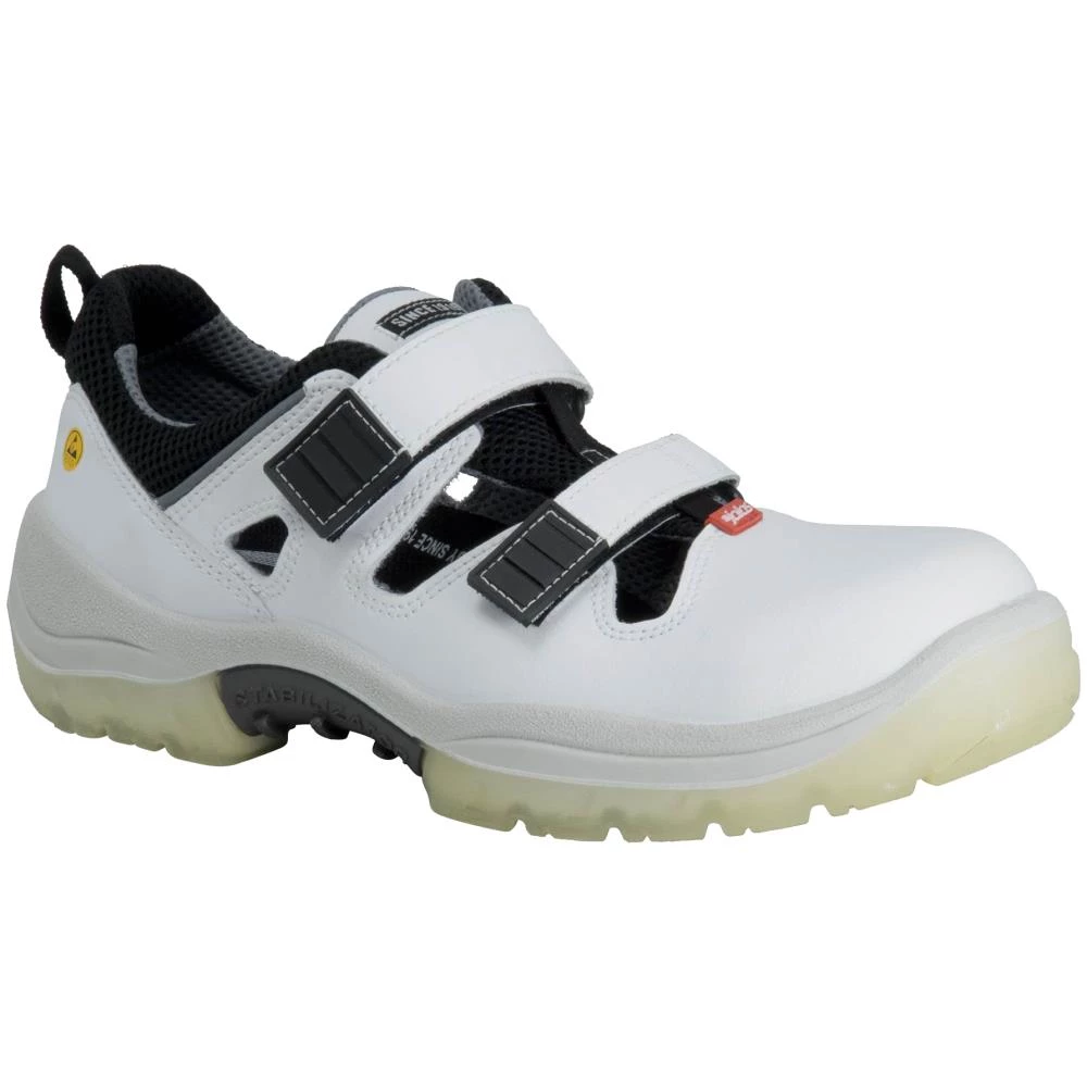 Sikkerhedssko med oliebestandig Stabilizor-ydersål. PU-behandlet læder/tekstil-overlæder. Dobbelt velcrolukning. Antistatiske egenskaber. Ergothan støddæmpningssystem. ESD-godkendt. Stabilisator. Tåværn af letvægtsaluminium. Til brug i rene og tørre inde-miljøer.