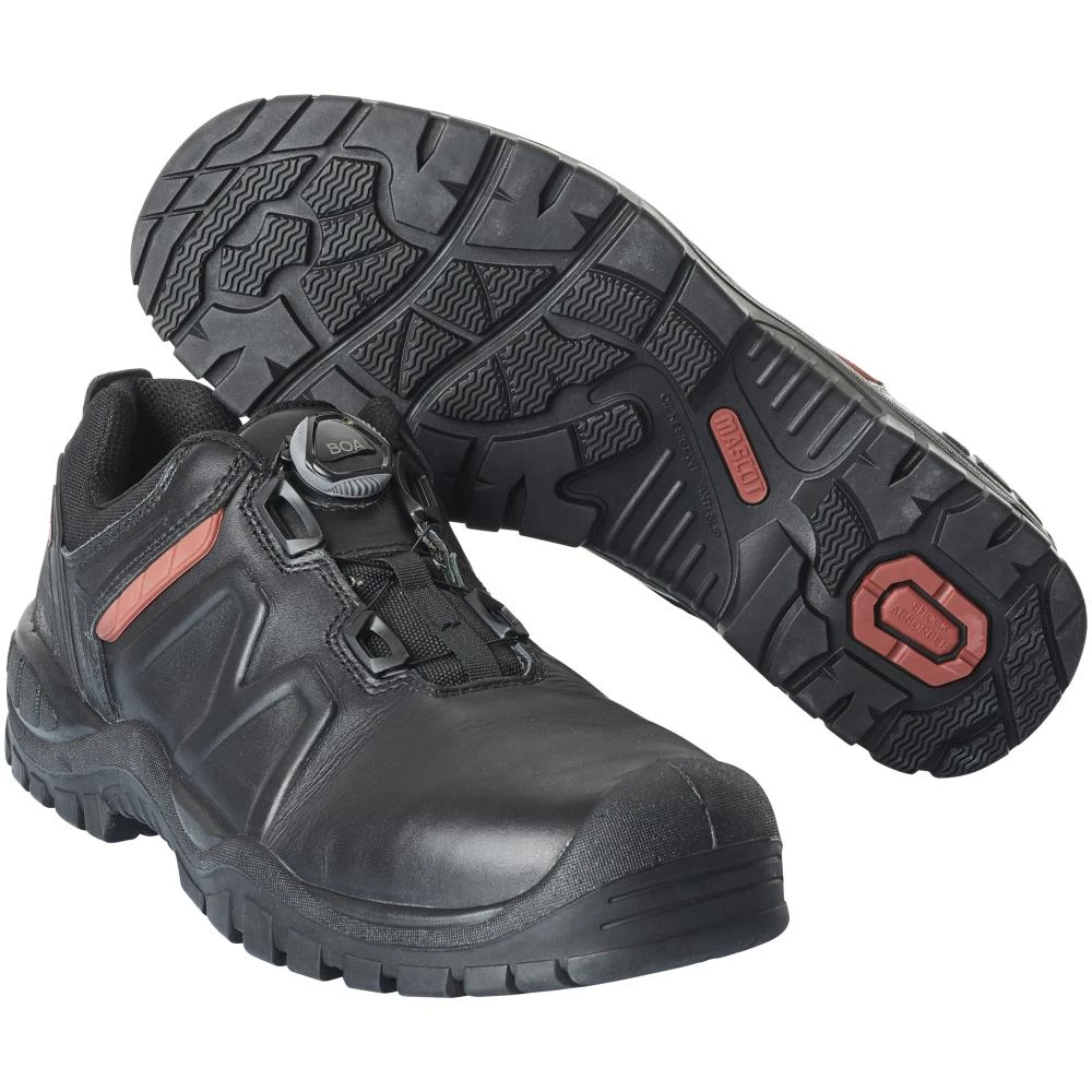 Sikkerhedssko i fuldnarvet læder, med det patenterede Boa-lukkesystem, som er en stor hjælp i en travl hverdag. Med Boa-lukkesystemet kan du lynhurtigt få dit fodtøj af og på. Den ergonomiske aluminiumtåkappe giver ekstra beskyttelse til tæer og øget bevægelsesfrihed. Fleksibelt sømværn af specialtekstil øger komforten og hindrer kuldebroer. Ydermere er tekstilsømværnet større og beskytter dermed mod søm og skarpe genstande på et bredere område sammenlignet med stålsømværn. Stabiliseret med det Mascot-patenterede multifunktionsgelenk, der gør fodtøjet velegnet selv på ujævne underlag eller ved arbejde på stiger. Sålmateriale af PU/gummi er specielt udviklet til krævende miljøer, varmebestandig op til 300°C kontaktvarme. Sålen er olie- og benzinresistent samt resistent over for visse kemikalier. Med stigegreb og stødabsorberende indlægssål. Skaft i vandafvisende og åndbart ydermateriale. Velegnede til knælende arbejde. Bagkappe. Non marking ydersål, som ikke smitter af. Sikkerhedsklasse S3. Skridhæmmende sål. EN ISO 20345. ESD-godkendte efter EN 61340-4-3: 2002 + EN 61340-5-1: 2016.