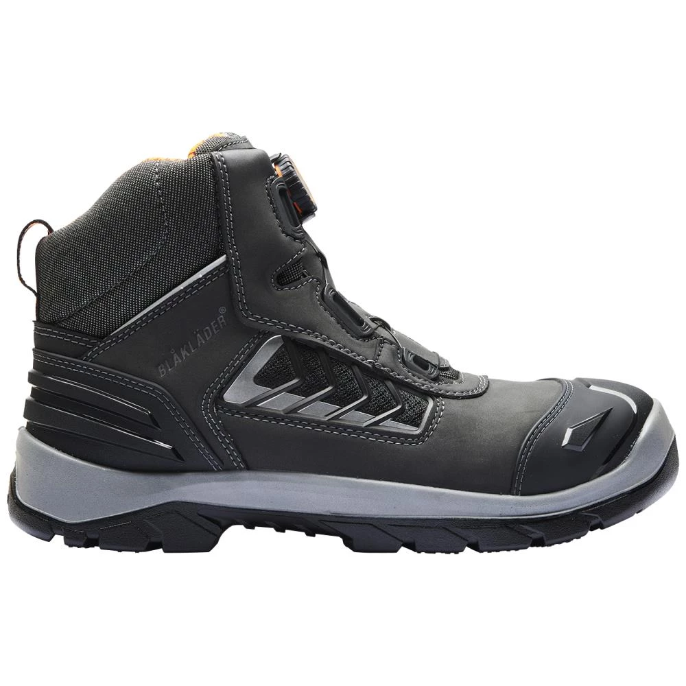 Slidstærk sikkerhedsstøvlet lavet af et slidstærkt og glat mikrofiber materiale. Skoen beskytter foden på den bedste måde med tåværn af aluminium, blødt sømværn af tekstil samt TPU-forstærket tå- og hælpartier. Refleksdetaljer på siden, såvel som hælen for synlighed, når det er nødvendigt. Skoens indersål er lavet af et anatomisk blødt PU-materiale, der har god fugtabsorbering og anti-lugt evne. Velegnet til arbejde indenfor bygge og anlæg, blikkenslagere, elektrikere samt reparation og service. EN ISO 20345:2011 S3 SRC ESD. Fås i str. 35-48. Damelæst er anvendt til str. 35-39.