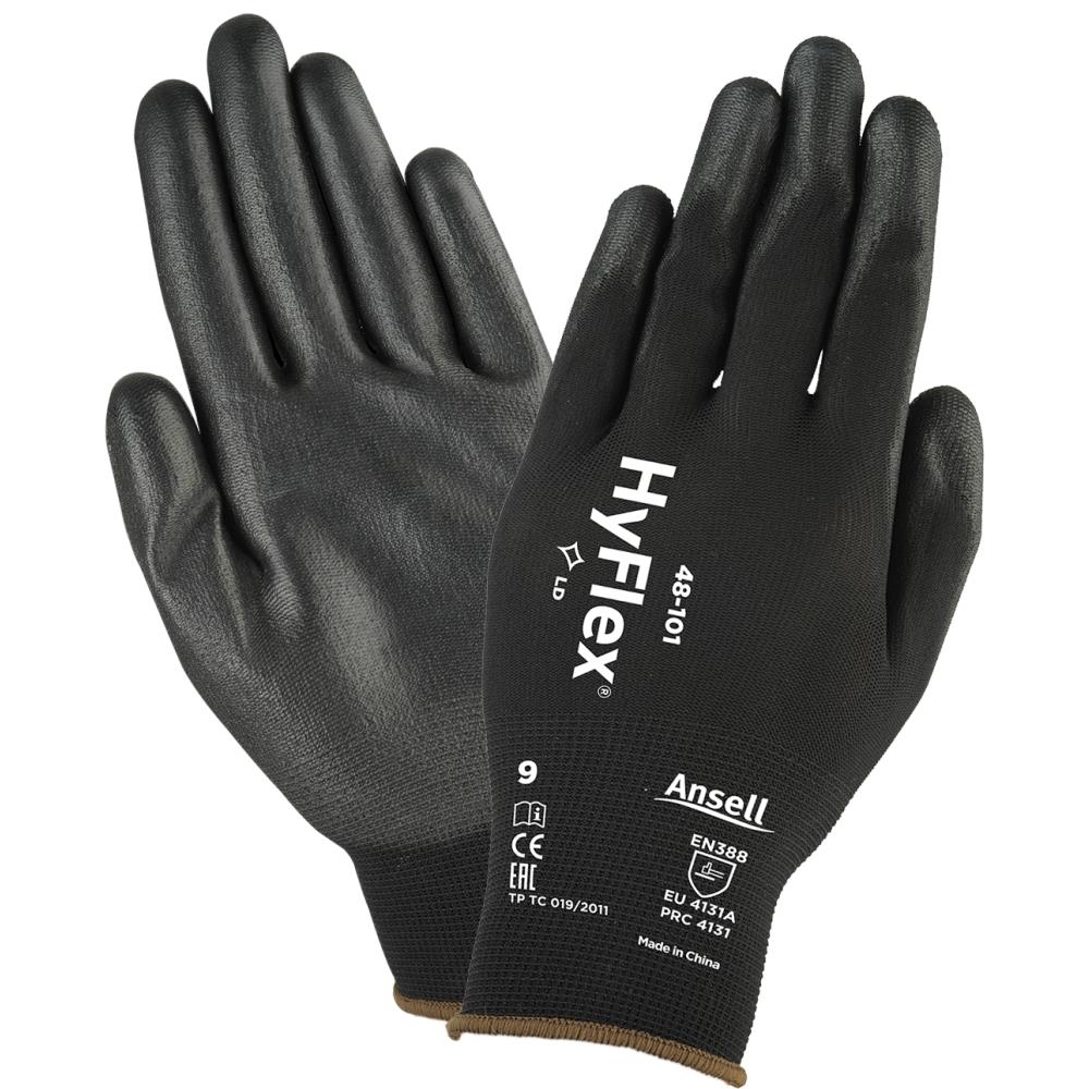 Halvdyppet, sømløs nylonhandske med ribkrave. Glat overflade med polyurethan-belægning. Ideel til pakning, inspektion, almindelig håndtering. Godkendelser: EN 388:2016 og EN 420:2003+A1:2009. Kategori II.