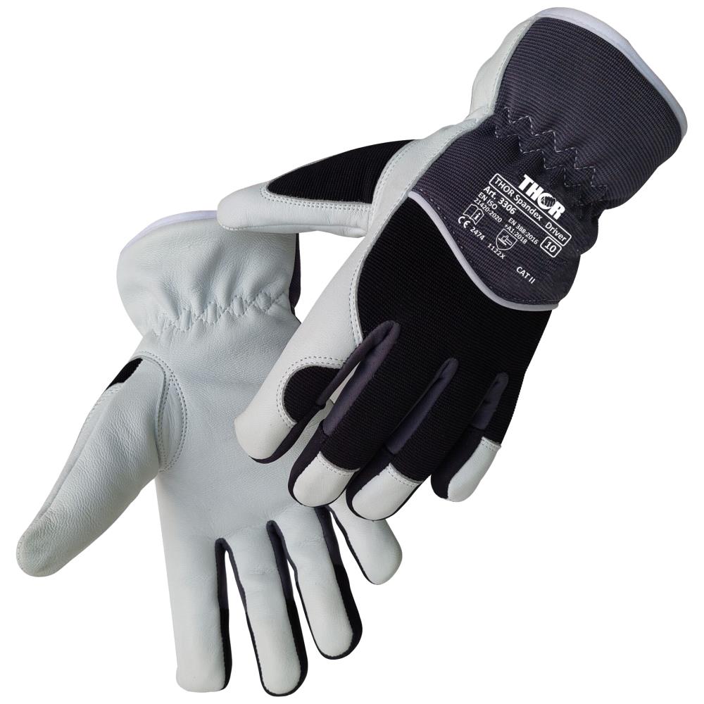 Vinterhandske 3306 driver model med god pasform. Fremstillet af 0,8 mm A-kvalitet gedeskind med spandex overhånd med indsyet elastik. Handsken er foret med fleece og har negleforstærkning. Fås i str. 9-13.