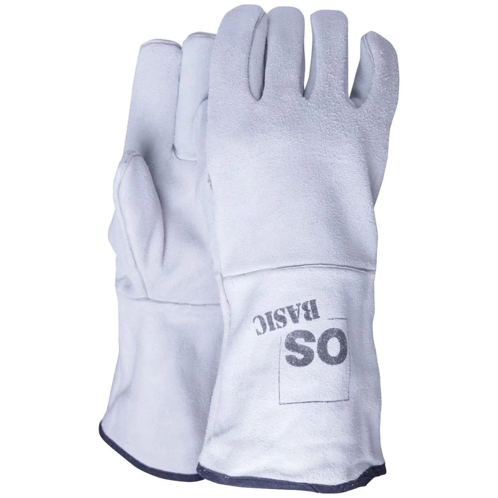 Slidstærk svejsehandske af natur-oksespalt med 14 cm lang krave. Helforet med bomuldsjersey i hånd og glat bomuld i krave. Godkendelser: EN 388:2003, EN 407:2004, EN 12477A og EN 420:2003+A1:2009. Kategori II.