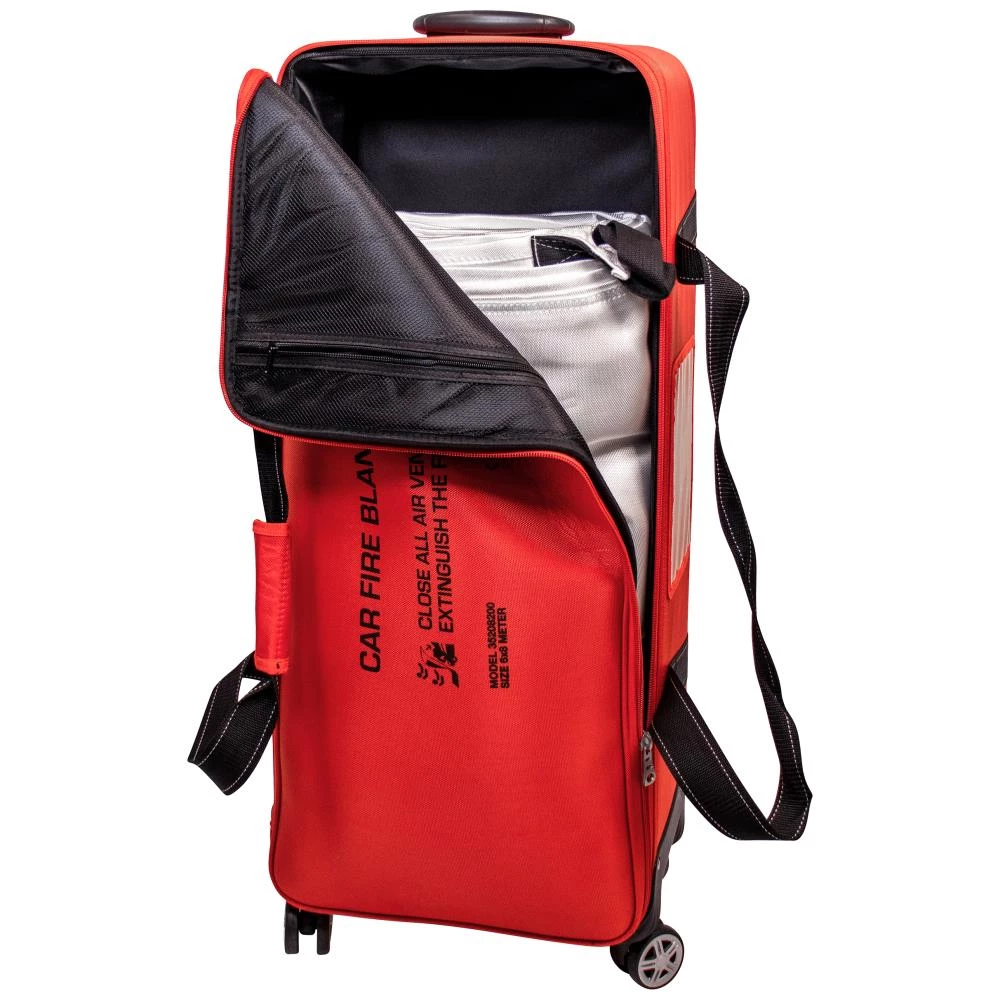 Special-brandtæppe til slukning af bilbrande, uanset om der er brand i en benzin-, diesel-, el- eller hybridbil. Med en størrelse på 6×8 mtr. er det muligt at dække de fleste personbiler og SUV’er fuldstændigt til så branden kvæles. Tæppet er fremstillet af high silica-materiale, som kan modstå temperaturer op til 1.100°C, hvilket gør det egnet til at bekæmpe de ekstreme varmeudviklinger fra batteribrande. Smeltepunkt 1.700°C. Leveres i en praktisk transportkuffert med hjul. Certificering: DIN EN 13501-1. Tæppet må ikke genanvendes og skal bortskaffes efter brug.