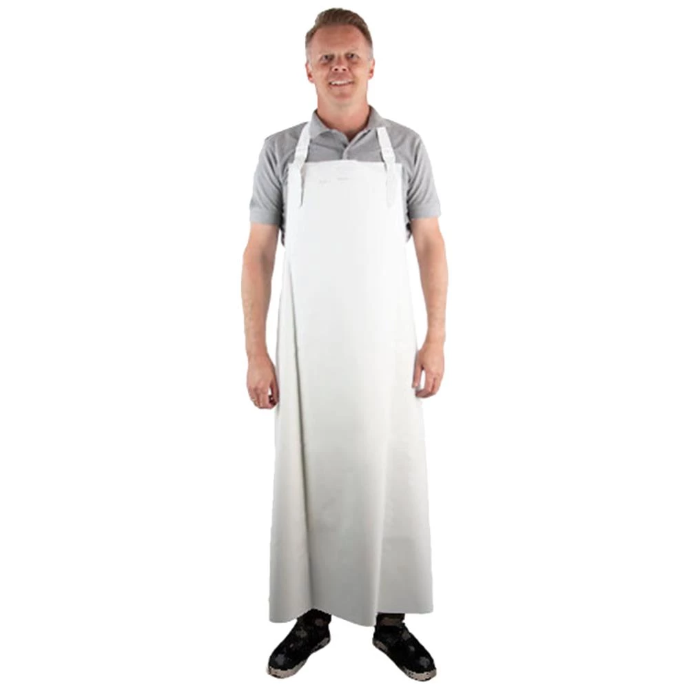 Hygostar vandtæt, olie- og fedtavisende forklæde med hygiejnisk, glat overflade. Yderside af nitril, inderside af polyester og bomuldslukning. Egnet til fødevareindustrien. Mål: 90 × 120 cm. 500 my.