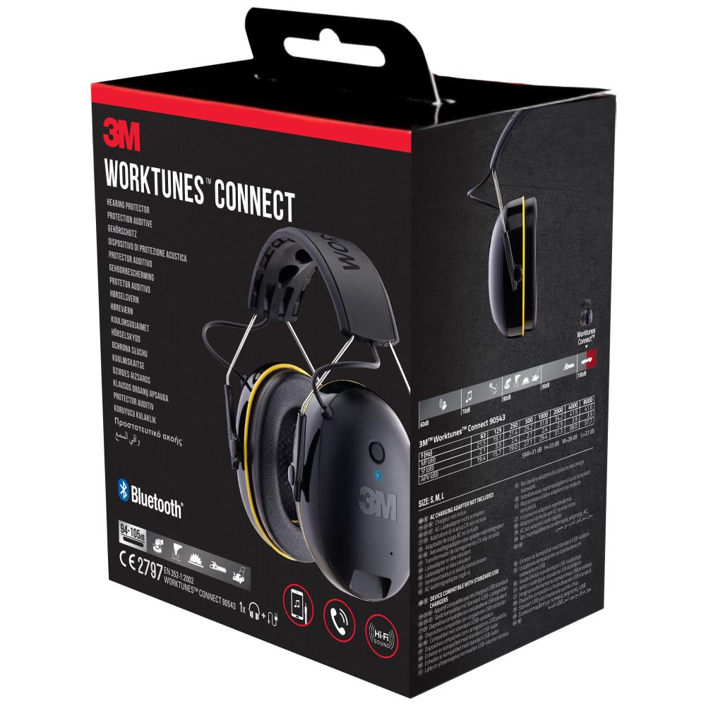 WorkTunes Connect høreværn m/Bluetooth 90543EC1. WorkTunes Connect trådløst høreværn med Bluetooth-teknologi. Moderne og komfortabelt letvægtsdesign med fleksibel hovedbøjle med udskæringer, der forbedrer komforten, når det bæres med kasketter. Bløde, formbare ørepuder og lavprofilkopper giver en behagelig pasform. Integreret mikrofon (ej støjdæmpende) gør det nemt at foretage og besvare telefonopkald uden at fjerne høreværnet. Trådløs Bluetooth-teknologi giver mulighed for at streame underholdning efter eget valg fra smartphone eller anden mobilenhed, mens de yder hørebeskyttelse i støjende omgivelser. Høreværnet har automatisk slukfunktion med lavt-batteri indikator. Indbygget genopladeligt batteri – ladeledning medfølger. Mere end 30 timers batterilevetid pr. opladning. Leveres uden aftagelige puder.
