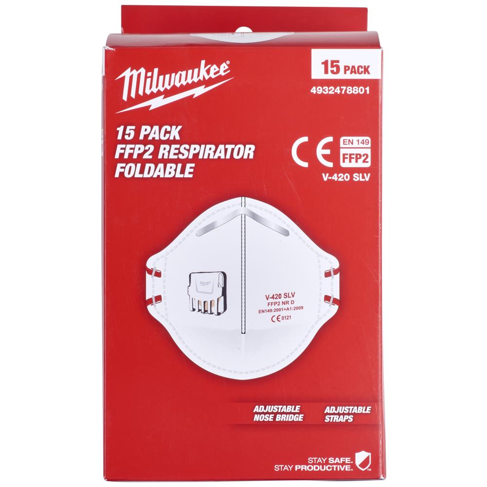 Foldbar engangsmaske med udåndningsventil – énvejs, som er dugfri og let at puste igennem. Flad sammenfoldning for nem håndtering på arbejdspladsen. Derudover er masken designet med fleksibel næsebro i aluminium for justerbar pasform, samt komfortable justerbare stropper. Fremstillet af materiale, som tillader huden at ånde. Engangsmasken er kompatibel med Milwaukee sikkerhedsbriller. Filtrerende ansigtsdel giver op 94 % beskyttelse. FFP2 certificering (europæisk certificering for FFP2 engangsmasker: EN149: 2001/A1:2009). CE kategori 3.