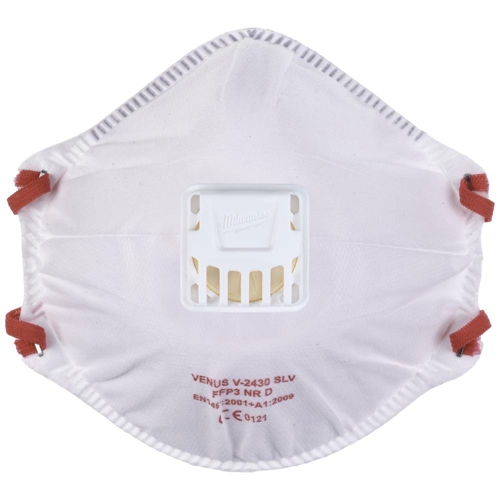 Engangsmaske med udåndningsventil – énvejs, som er dugfri og let at puste igennem. Derudover er masken designet med fleksibel næsebro i aluminium for justerbar pasform, samt komfortable justerbare stropper. Fremstillet af materiale, som tillader huden at ånde. Tæt forseglet så den skærmer mod støv og snavs. Engangsmasken er kompatibel med Milwaukee sikkerhedsbriller. Højtfiltrerende maske, som giver op til 99 % beskyttelse (mod asbest og silica). Europæisk certificering for FFP3 engangsmasker: EN149: 2001/A1:2009). CE kategori 3.