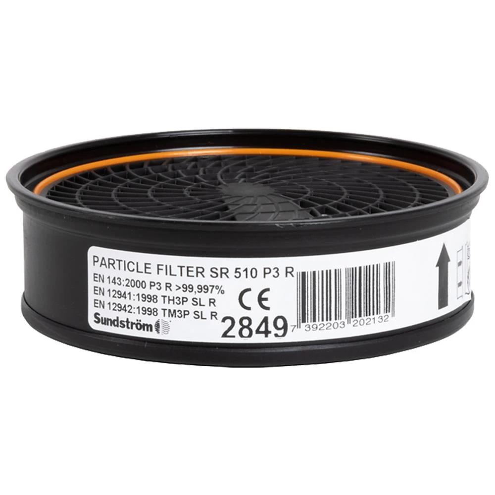 Partikelfilter SR 510 til brug med Sundström halvmasker og helmasker samt SR 500/SR 500 EX/SR 700-turboenhed. Filteret beskytter mod alle typer partikelforurenende stoffer. Partikelfilteret kan nemt kombineres med gasfiltre fra Sundströms filtersortiment for også at beskytte mod gasser og dampe, f.eks. under sprøjtemaling. Partikelfilteret bør kombineres med forfilteret SR 221, hvilket dermed forlænger partikelfilterets levetid. SR 500/SR 500 EX turboenheden bør altid bruges med to partikelfiltre eller to kombinerede filtre bestående af gasfiltre og partikelfiltre.
