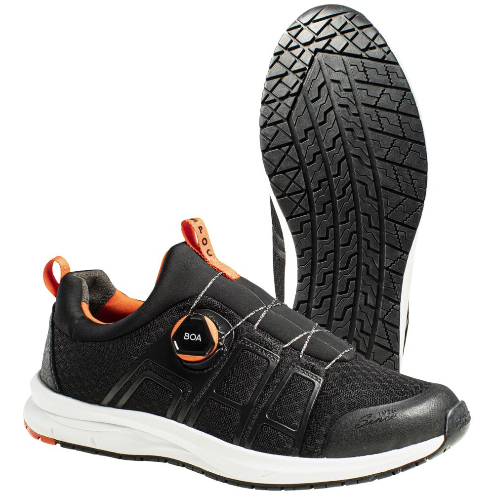 SpOc 5362 er en arbejdssko med et moderne design. Skoen har hurtigluk på siden og åndbar tekstiloverdel med soklignende design, som er behagelig at have på samt nem at tage på og af. SpOc 5362 har en skridsikker og oliebestandig Active-sål med godt greb samt FX2 Pro SpOc indersål. Model med antistatiske egenskaber og Ergothan støddæmpningssystem for øget komfort og god ergonomi gennem en hel arbejdsdag. SpOc 5362 er specielt designet til servicesektoren – primært til brug indendøre. Normal pasform. EN-overholdelse O1 A E FO SRC. ESD-godkendt. Fås i str. 35-48.