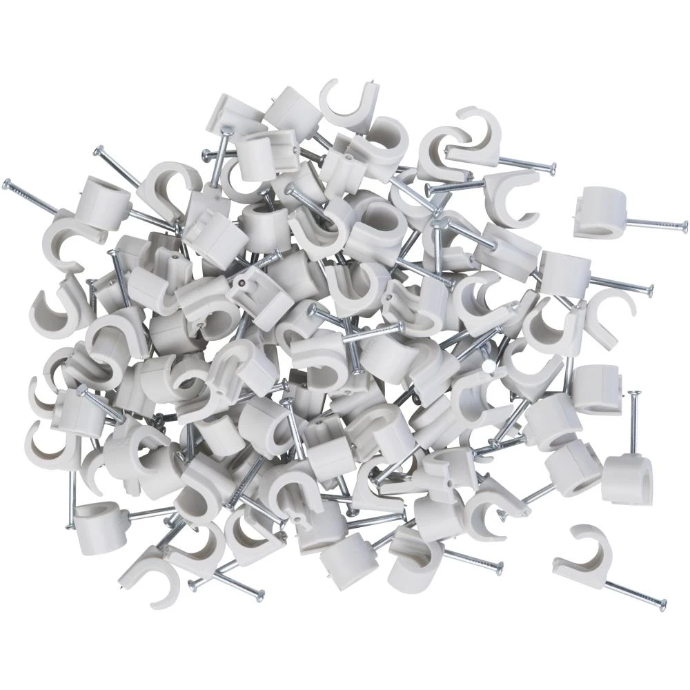 Grå, rund ledningsclips til fastsættelse af rund ledning/kabel. Fås i flere varianter.