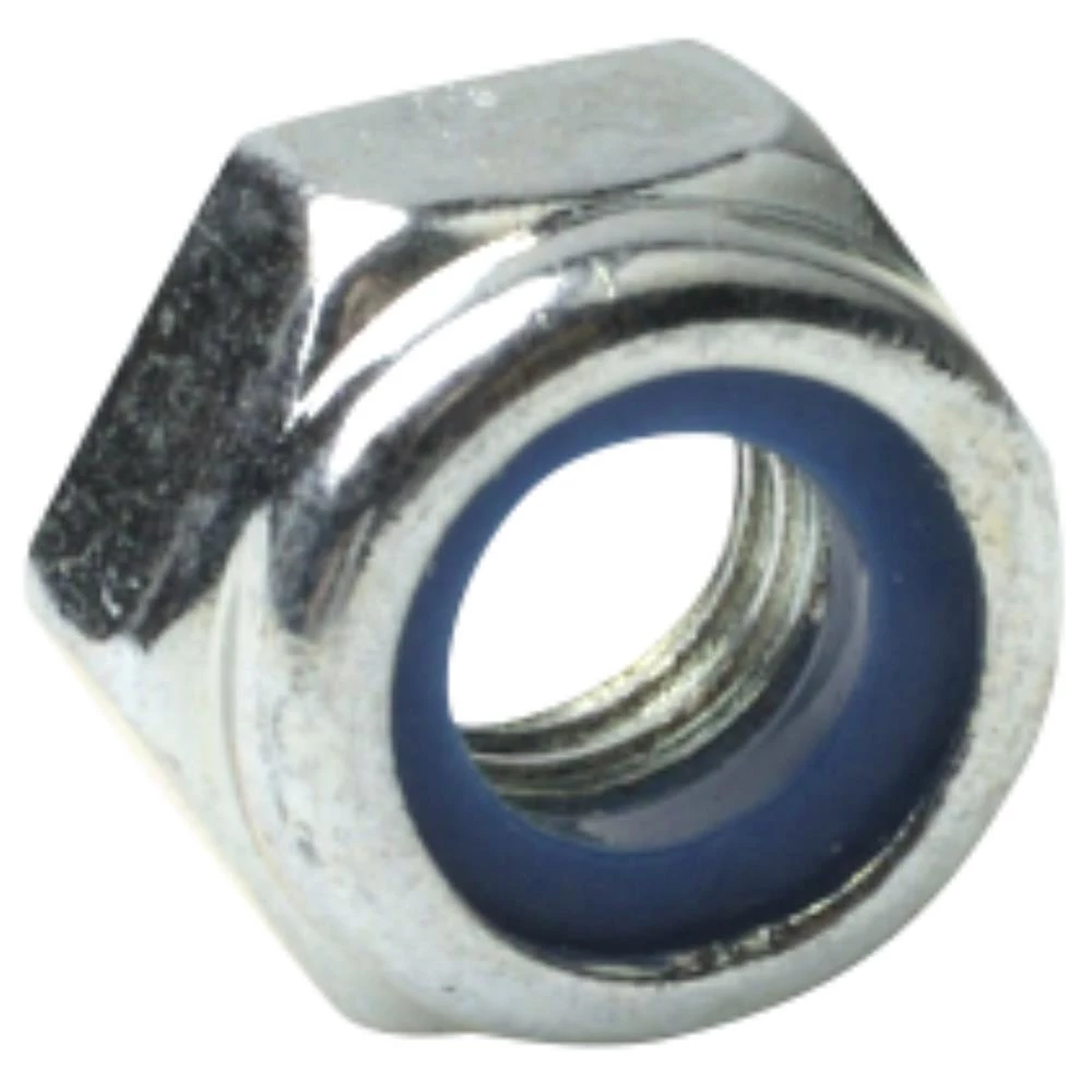 Låsemøtrik beregnet til montering, hvor låsning af samlingen ønskes. Låsningen fremkommer gennem den friktion der skabes mellem nylonbøsningen og gevindet. Metrisk gevind. Fås i flere dimensioner.