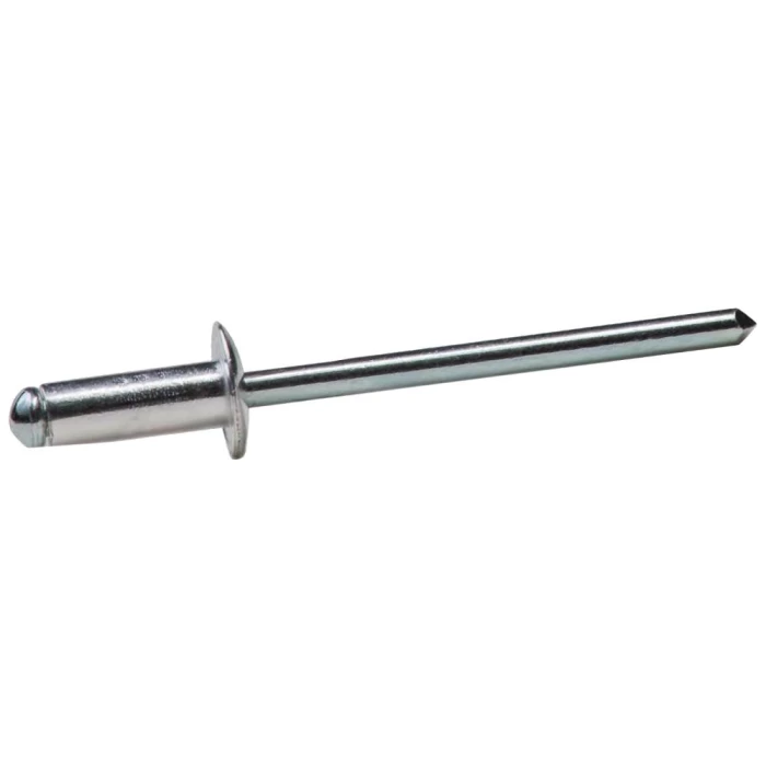 Standard-blindnitte til sikker og fast fiksering. Rundt hoved og krave i aluminium (Al Mg 3,5), stift i stål (zinkbelagt 3,0 µ). Designet til samling af alle typer materialer, når en ekstra stærk klemkraft ikke er påkrævet. EN ISO 15977. Fås i flere størrelser.