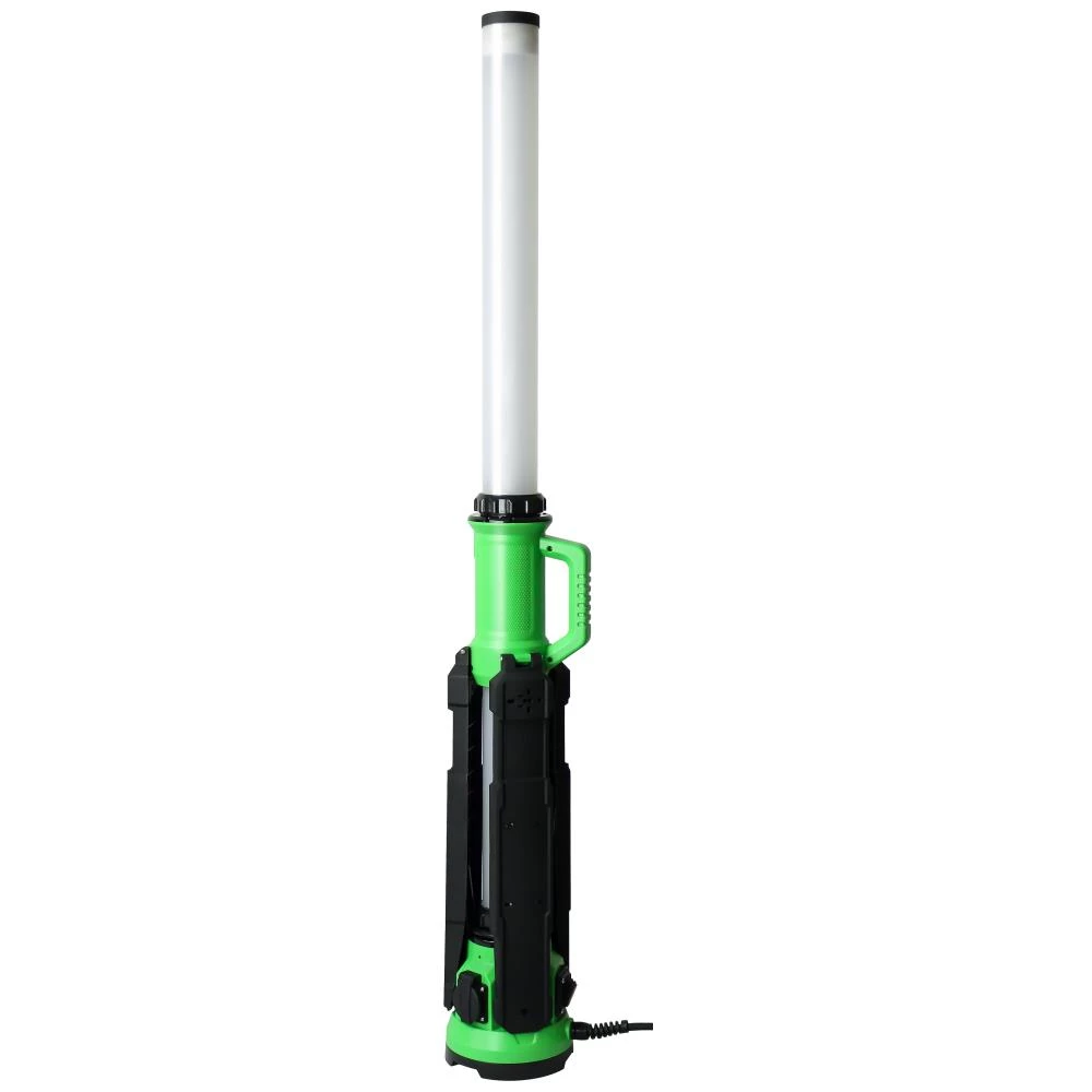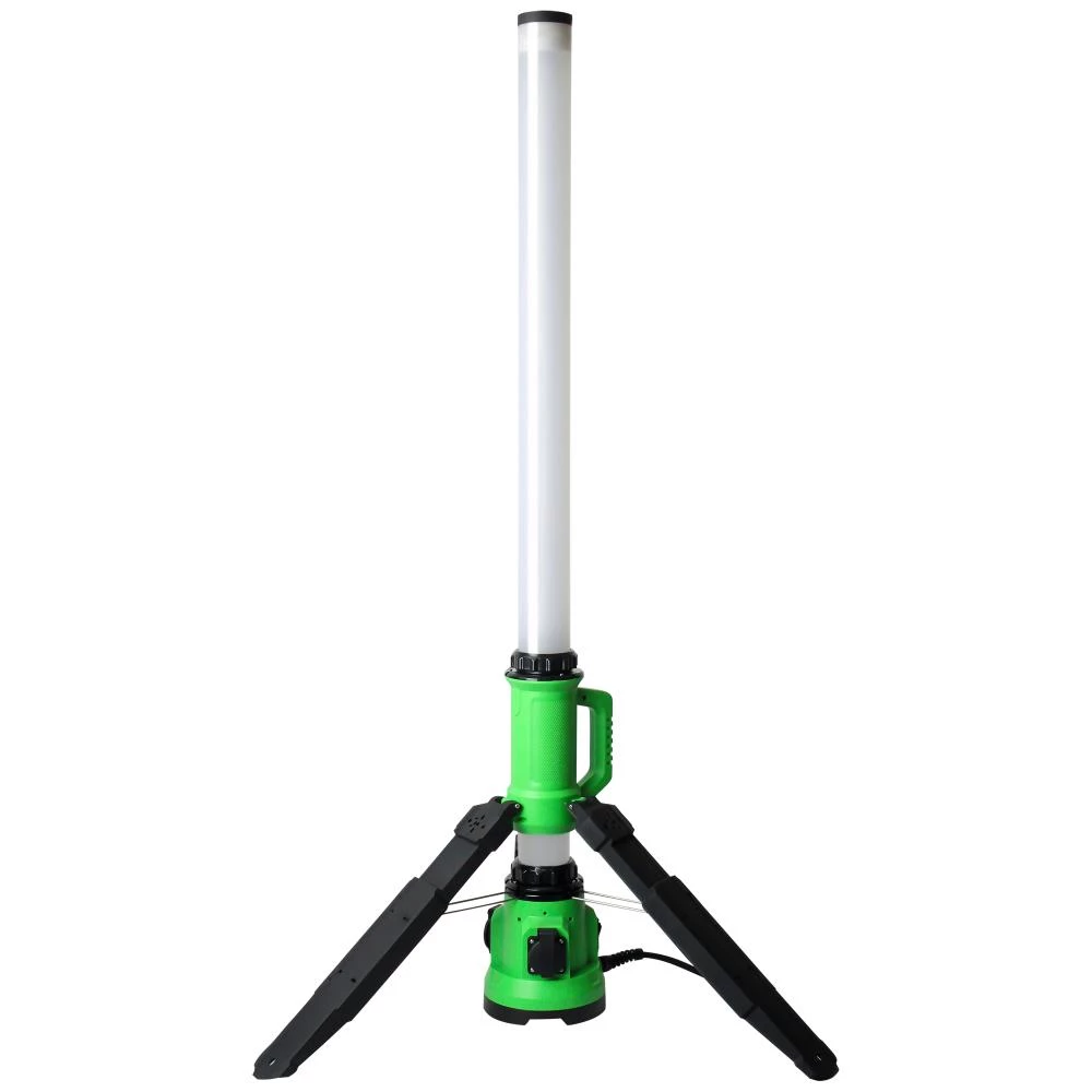 LED-Worklight med 2× DK udtag med jord. 3G1,5mm² H07RN-F kabel. Lampen har indbygget stativ der kan klappes sammen for nem opbevaring.