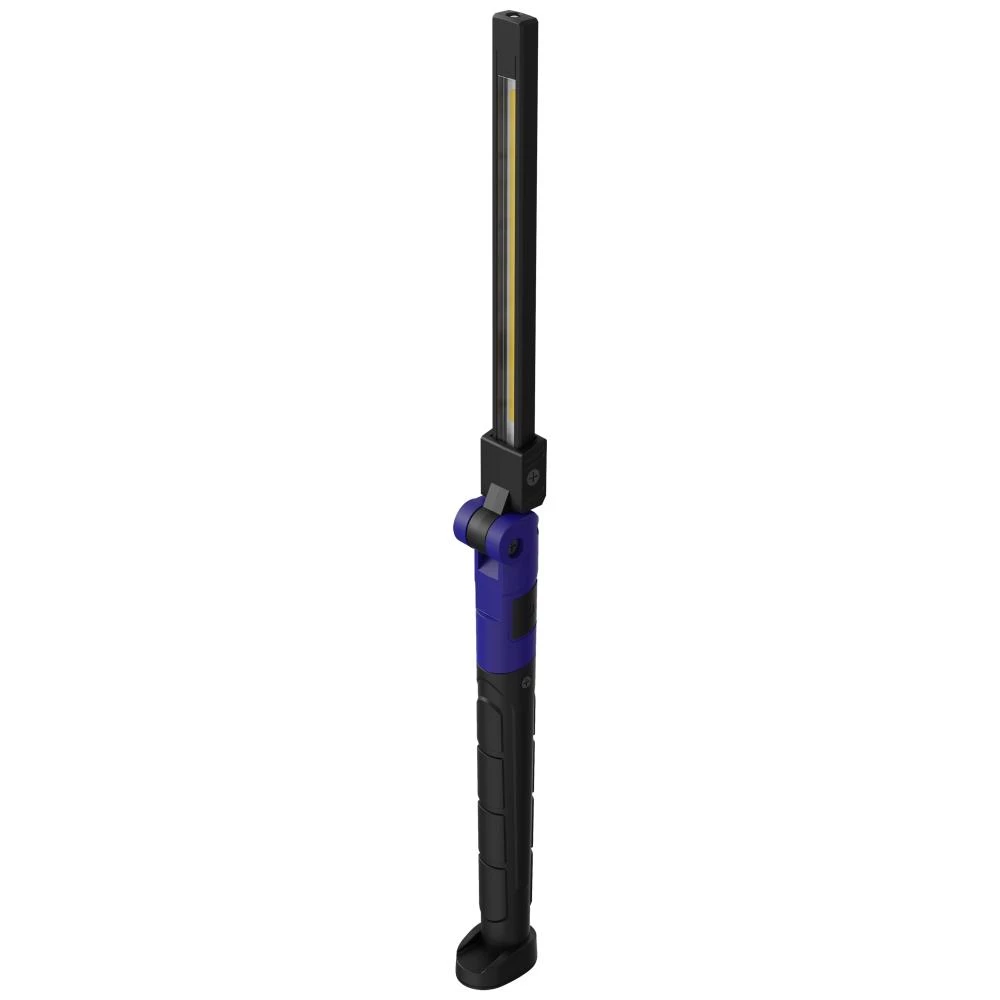 Mini-arbejdslampe – ultra slank design med alu- og ABSkrop med kraftig magnetfod og 180° foldbar 2 W COB-LED med tre lysstyrker 80-280 lumen. USB lader Type-C medfølger. 1,5-4 timers forbrug, ladetid 2 timer. IP54. Benyttes ved temperaturer mellem ÷10° til +40°C.