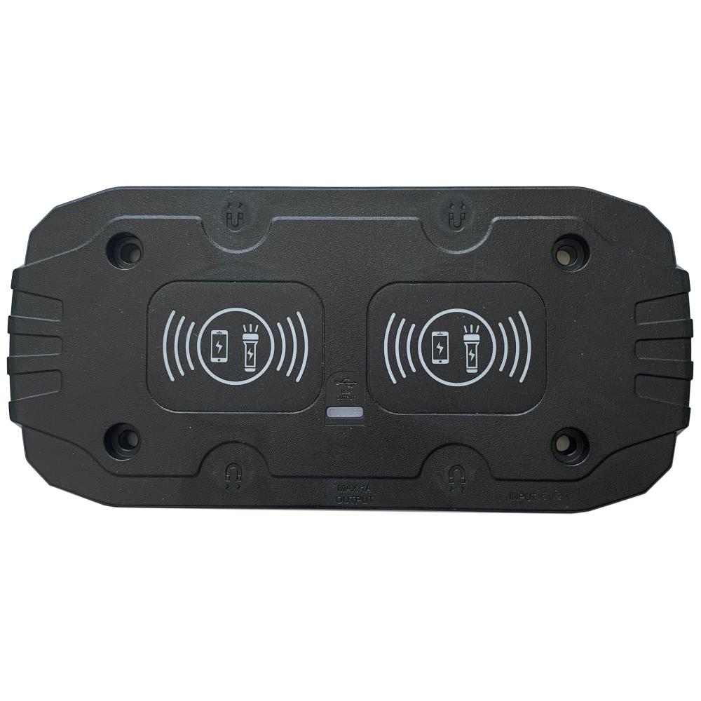 Ladeplade til wireless-lamper. Ladepladen er med kraftig magnet til montering på lift, i bil eller på værkstedsvægge af metal. Der er også mulighed for montering med skruer på ikke magnetiske bagplader. Passer til Bato lamper 6542 og 6546, USB-stik og kabel 6549. Ladepladen kan også lade andre wireless produkter, som fx telefon. Fås som enkelt eller dobbelt variant.