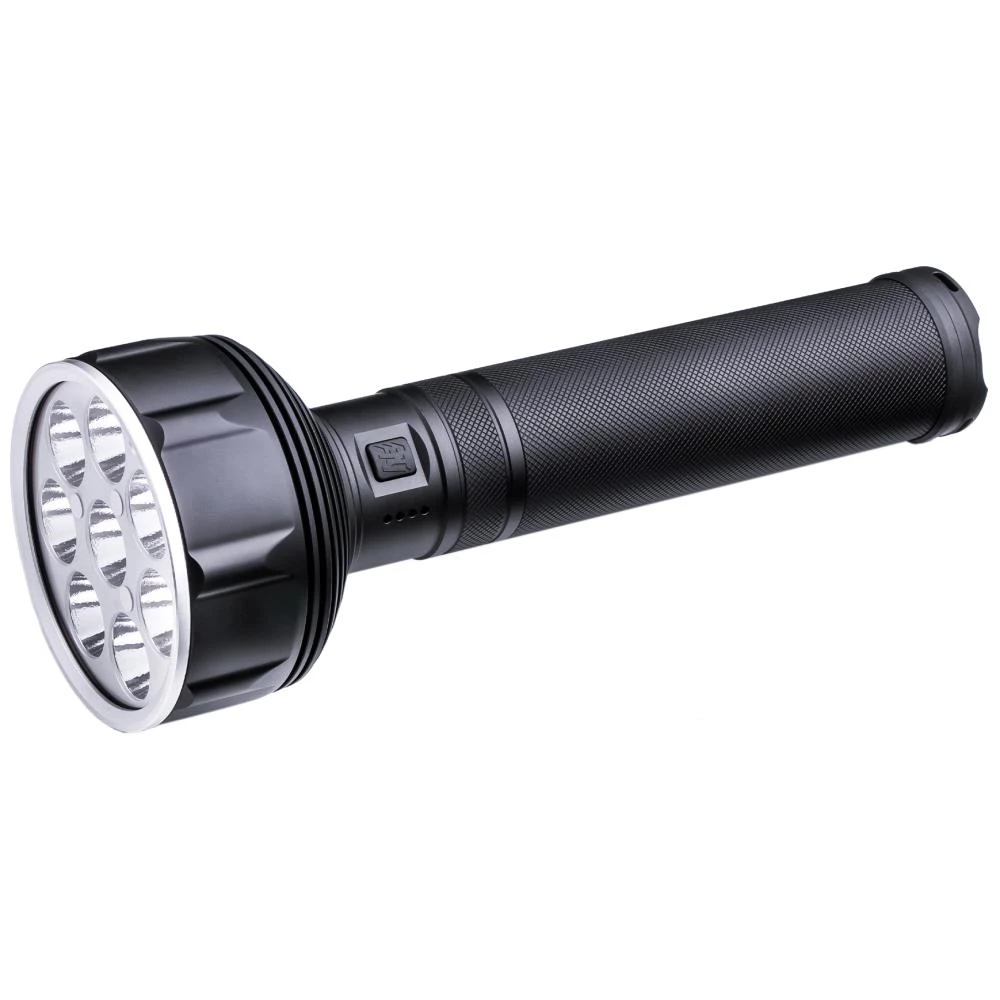 Meget kraftig LED-håndlygte med lysstyrke på hele 20.000 lumen. Brug den til fx udendørsaktiviteter, eftersøgningsopgaver, redningsmissioner, udforskning af grotter osv., hvor der er behov for langtidsbelysning med bred rækkevidde. Med S.O.S-funktion og sensor, så den blænder ned ved modlys. Indstillinger 20.000/6.000/1.700/90 lm / strobe /SOS. Brændetid 2 timer. Rækkevidde 740/410/212/50 mtr. Powerbank-funktion. Batteristatusindikator. IPX7. Slagmodstand 1 mtr. Oplades med USB-C. Batteri indbygget 6 × 4.800 mAh batteripakke.