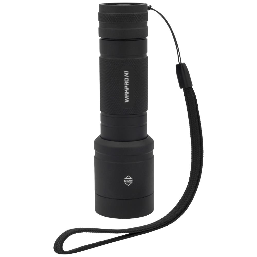 WrkPro N1 er en lygte i et simpelt, men robust og modstandsdygtigt design. Størrelsen er ideel til de fleste typer opgaver. Lygten er udstyret med fokuskontrol, XP-G2 Cree hvid LED og 5 lysfunktioner: turbo 450 lm, høj 300 lm, medium 150 lm og lav 20 lm samt 8Hz blink. Bruger 4× AAA batterier (medfølger). IP66. Leveres i gaveæske inkl. bærestrop.