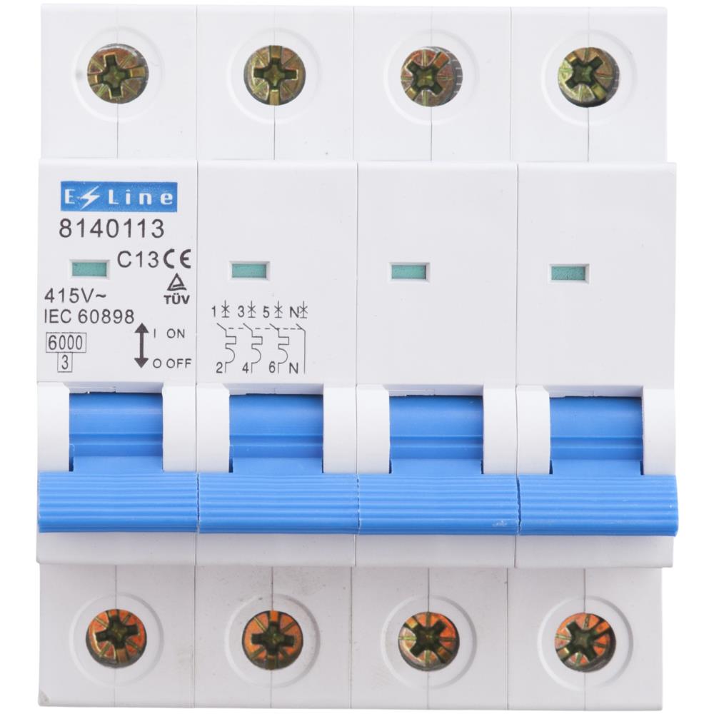 Automatsikring med fire moduler. 3-pol. C-karakteristik 6 kA. Fås i flere varianter.