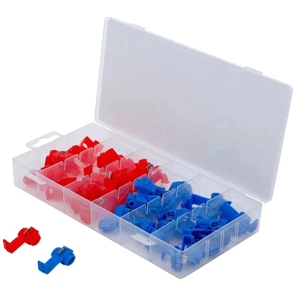 Strømtyvssortiment med 50 klemmer lavet af stærkt ledende materiale. Polyamidisolering (nylon) giver den højeste kvalitet. Temperaturområde +60-110°C (kortvarigt 130°C). Leveres i sortimentsæske.