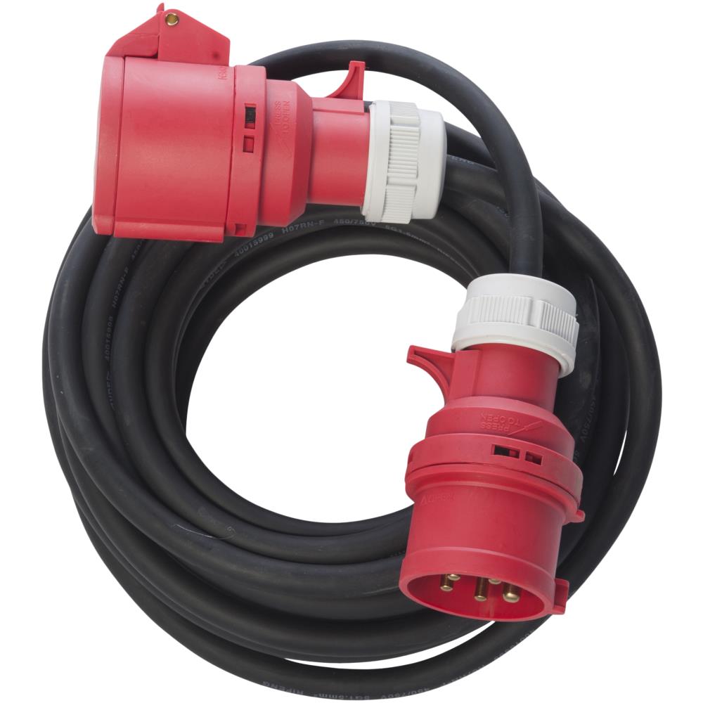 CEE kabelsæt med fasevender og neopren-gummikabel H07RN-F 5G1,5 mm². 400 V, 16 A. IP44. Fås i flere længder.