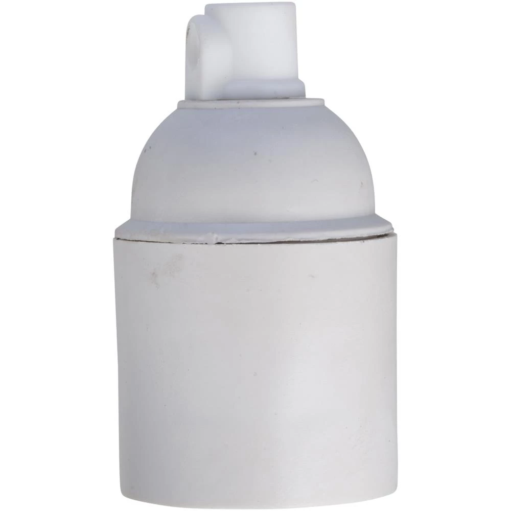 Hvid E27 fatning med rækaflastning og beskyttelseshætte. 250 V, 4 A. 1.000 W. Leveres i pose.
